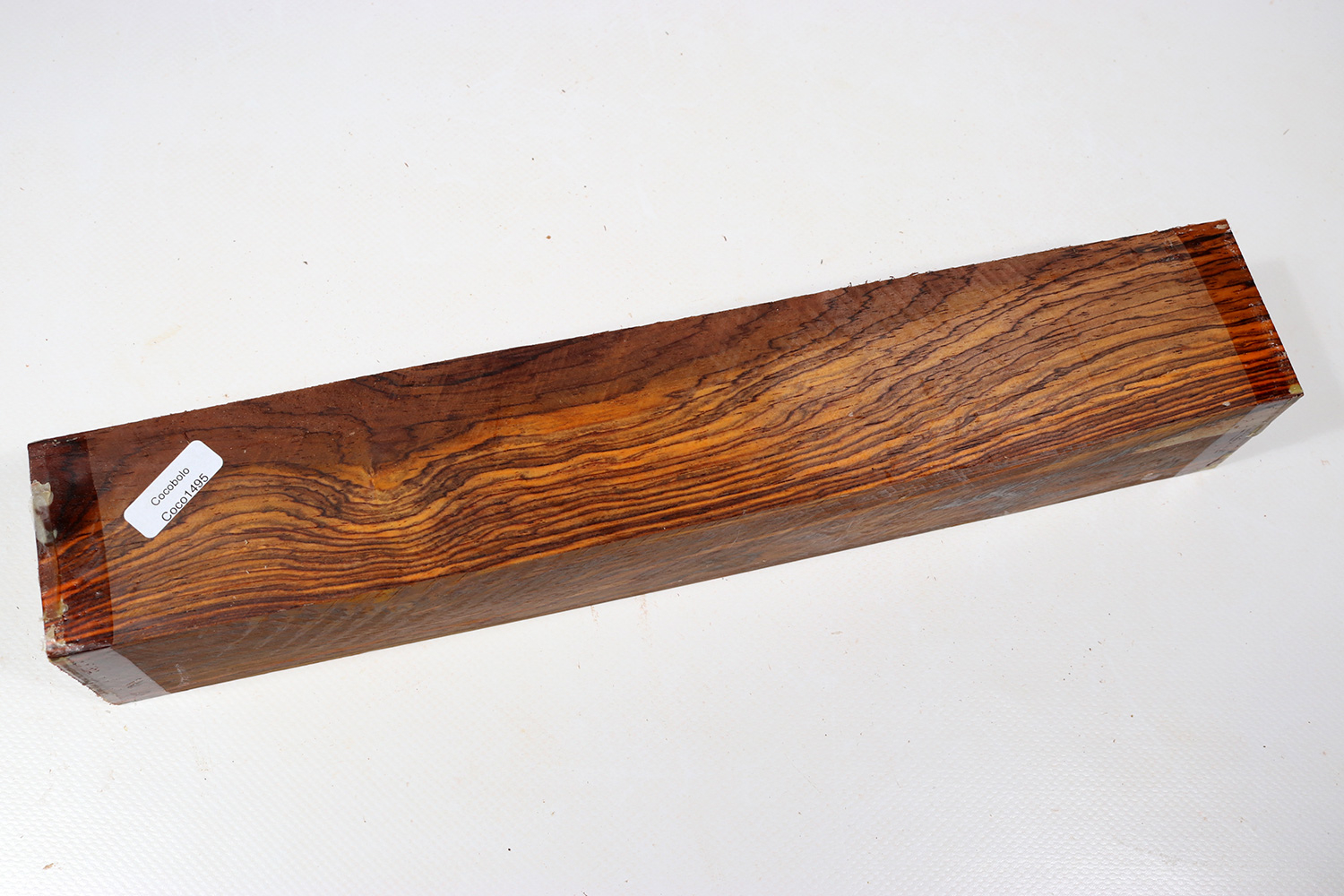 Cocobolo (Dalbergia retusa) kommt aus Mittelamerika und wächst entlang der Pazifikküste, hauptsächlich jedoch aus Nicaragua. Es gehört zu den Palisanderhölzern und ist dort der Kandidat mit dem meisten Fettgehalt. Oft reicht dadurch ein polieren ohne irgendwelche Oberflächenmittel. Genutzt wird lediglich das Kernholz, welches frisch geschnitten von dunkel-orange bis tiefrot reicht. Obwohl das hellgelbe Splintholz ein sehr hübscher Kontrast sein kann. Cocobolo dunkelt im Lauf der Zeit und unter Einfluss von UV-Licht nach.