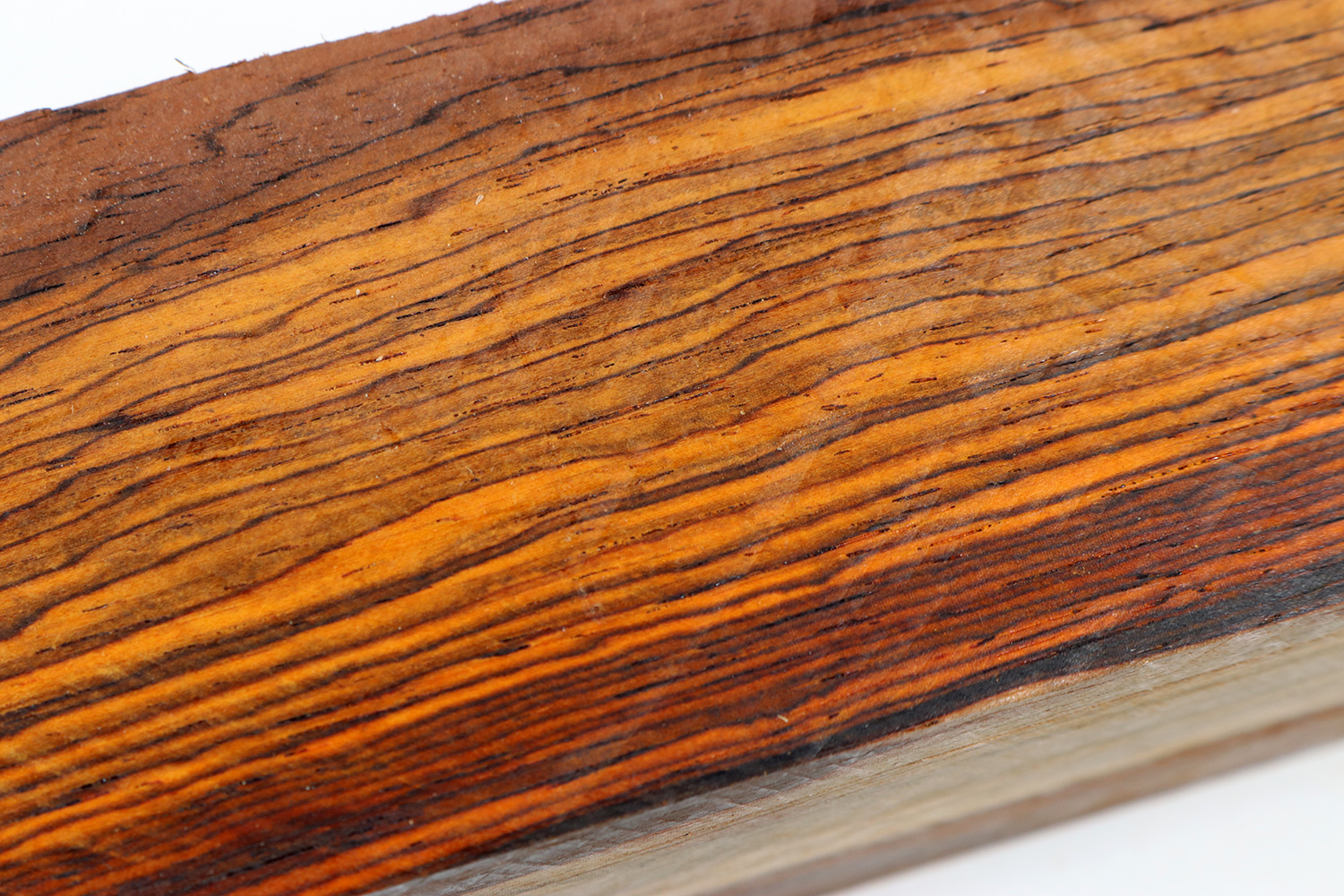 Cocobolo (Dalbergia retusa) kommt aus Mittelamerika und wächst entlang der Pazifikküste, hauptsächlich jedoch aus Nicaragua. Es gehört zu den Palisanderhölzern und ist dort der Kandidat mit dem meisten Fettgehalt. Oft reicht dadurch ein polieren ohne irgendwelche Oberflächenmittel. Genutzt wird lediglich das Kernholz, welches frisch geschnitten von dunkel-orange bis tiefrot reicht. Obwohl das hellgelbe Splintholz ein sehr hübscher Kontrast sein kann. Cocobolo dunkelt im Lauf der Zeit und unter Einfluss von UV-Licht nach.