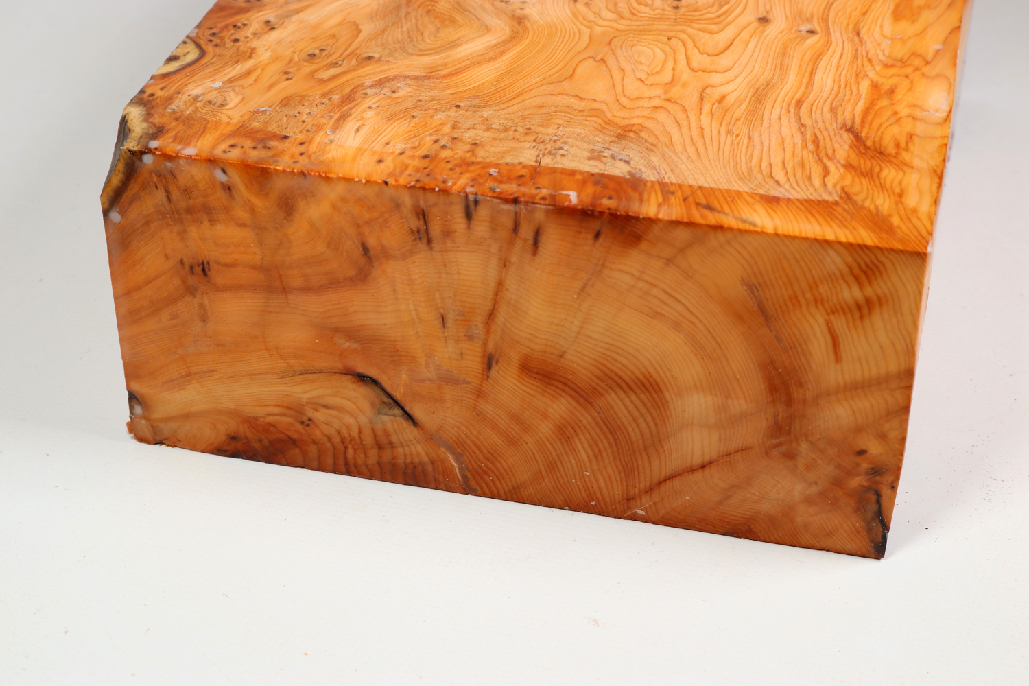 Eibenholz ist sehr hart, schwer und extrem elastisch. Es eignet sich wegen seiner Dauerhaftigkeit eigentlich für jedwede Art von Möbeln, Kunsthandwerk oder Musikinstrumente. Eibenholz, obwohl es auch zickig sein kann lässt sich hervorragend bearbeiten, besonders schneidend.
