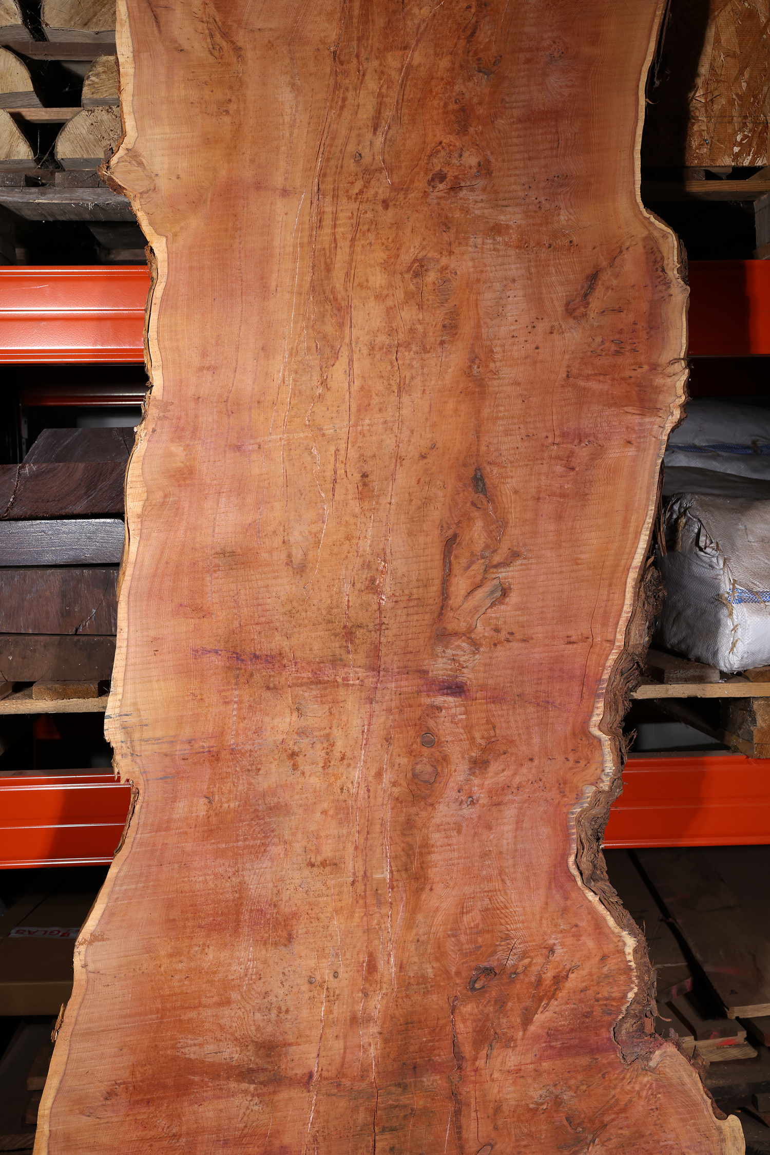 Zustand: Sägerau (Sägewerk) und durch jahrelange Lagerung Verschmutzungen/Lagerspuren. Die eibetypische Orange-Farbe kommt sofort nach dem schleifen zum Vorschein.