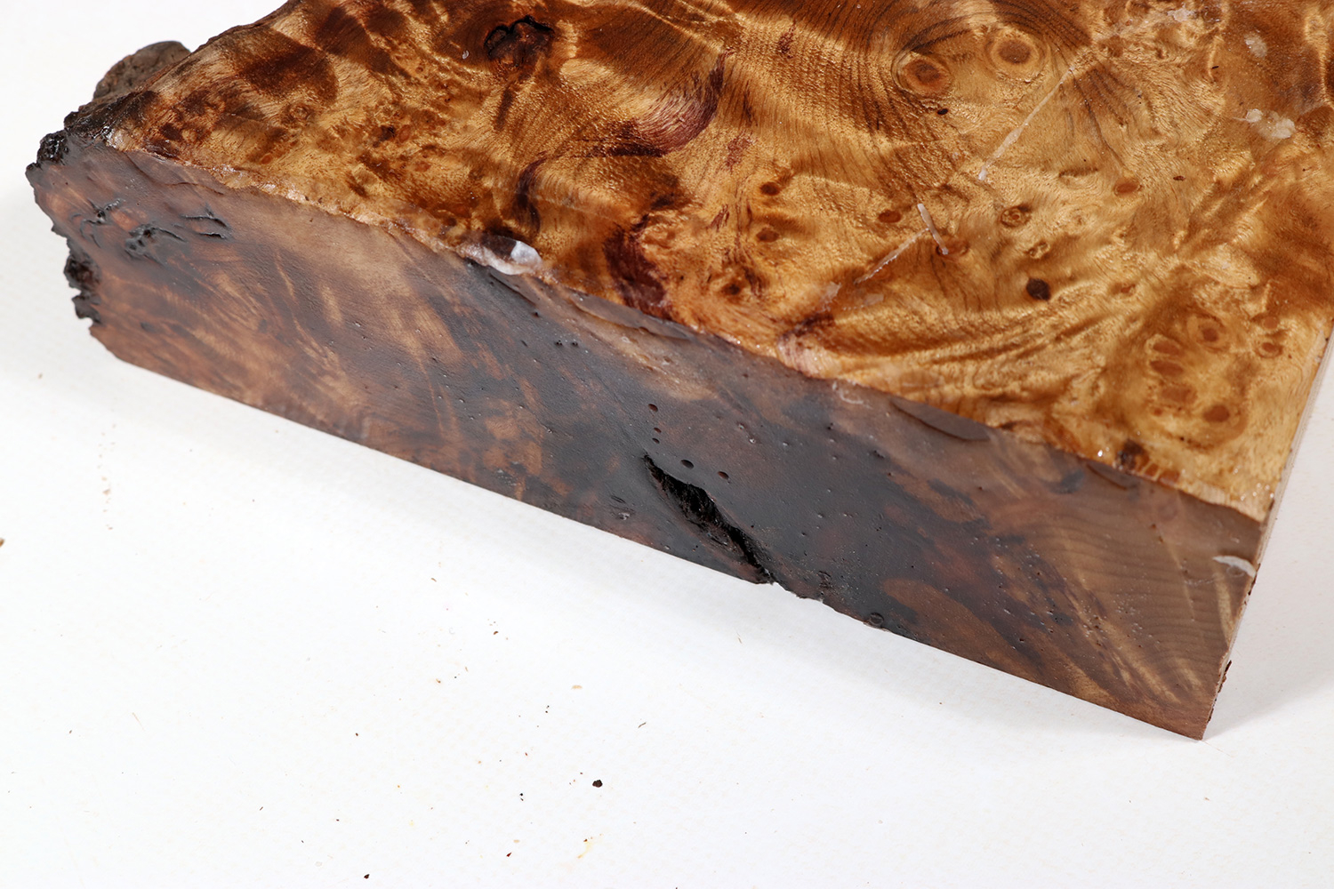 Golden Madrone (Nothaphoebe spp.) stammt aus Südostasien und ist eine Unterart der Lorbeerfamilie. Es ist am häufigsten in Indonesien, Malaysia, Vietnam, Kambodscha und Laos zu finden. Es hat einen subtilen Mentholgeruch, der beim Arbeiten wahrgenommen wird. Das dreidimensionale Erscheinungsbild der polierten Wurzel ist massiv und unverwechselbar mit einer Tiefe wie bei keinem anderen Holz. Das Kornwachstum ist relativ groß.