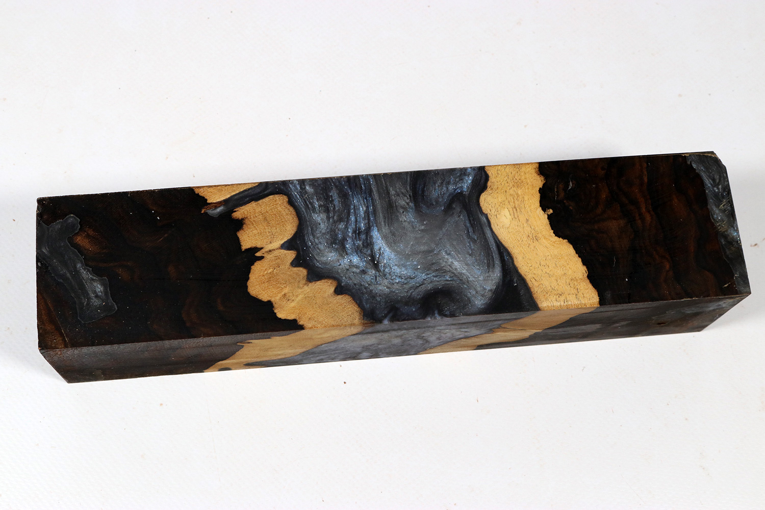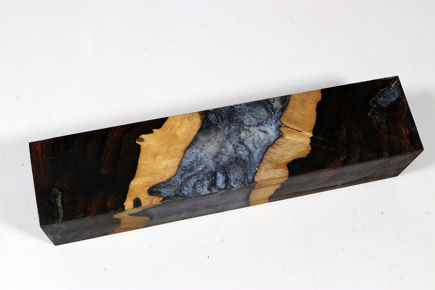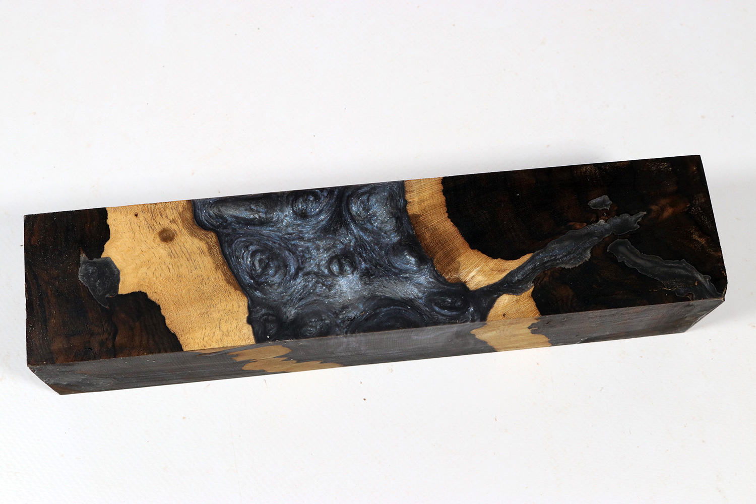 Der Holzanteil dieses Blanks ist mit Acrylharz stabilisiert und vollständig durchdrungen. Sie lassen sich mit scharfen Werkzeugen jedoch sehr gut bearbeiten, die Geruchsbelästigung hält sich dabei in Grenzen und ist zu vernachlässigen. Durch die Stabilisierung wird eine sehr gute Härte, Standfestigkeit und Stabilität erreicht. Es eignet sich dadurch auch gut für starke Beanspruchung / feuchten Bereich, wie z.B. Outdoor.
