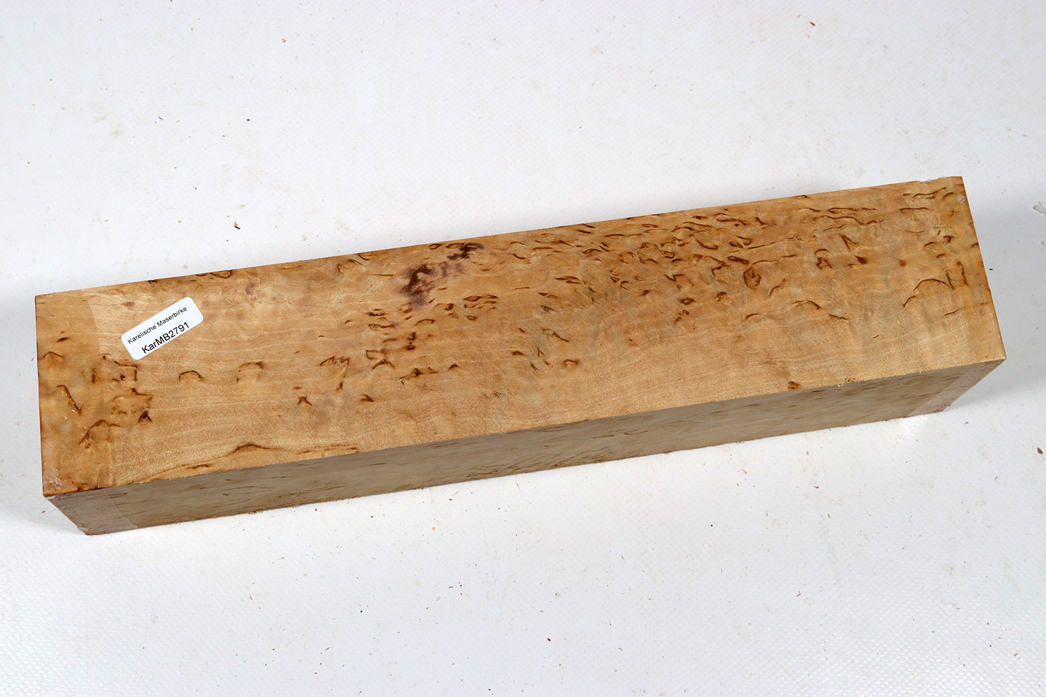Die Karelische Maserbirke (Betula pendula var. carelica) kommt in der Grenzregion zwischen Rußland und Ostfinnland, dem sogenannten Karelien vor. Es ist einfach DAS klassische Holz für nordische Messer aller Art, wie z.B. Sami-Messer. Eine Verwendbarkeit für größere Objekte schließt sich auf Grund der eher geringen Dimensionen von selbst aus (die Stämme haben üblicherweise einen Durchmesser von lediglich 10-20 cm). Gut gemaserte Stämme sind verhältnissmäßig selten und begehrt. Das typische Aussehen in Form der braunen Adern ist einzigartig und kommt bei keinem anderen Maserholz vor.