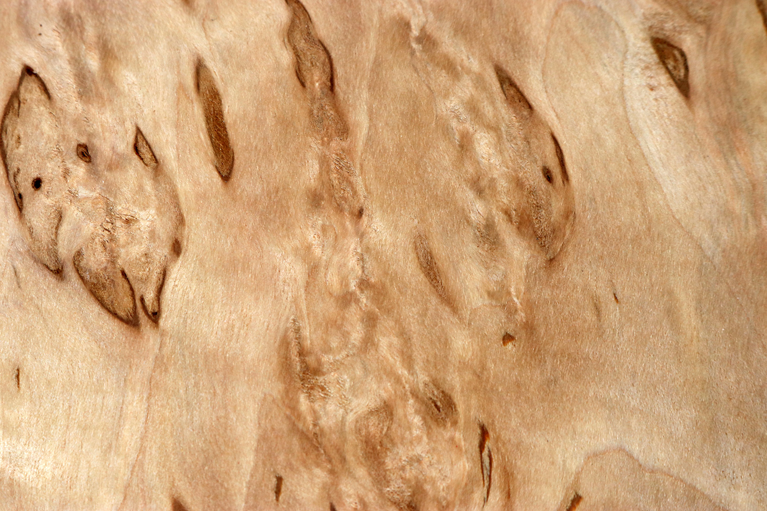 Die Karelische Maserbirke (Betula pendula var. carelica) kommt in der Grenzregion zwischen Rußland und Ostfinnland, dem sogenannten Karelien vor. Es ist einfach DAS klassische Holz für nordische Messer aller Art, wie z.B. Sami-Messer. Eine Verwendbarkeit für größere Objekte schließt sich auf Grund der eher geringen Dimensionen von selbst aus (die Stämme haben üblicherweise einen Durchmesser von lediglich 10-20 cm). Gut gemaserte Stämme sind verhältnissmäßig selten und begehrt. Das typische Aussehen in Form der braunen Adern ist einzigartig und kommt bei keinem anderen Maserholz vor.
