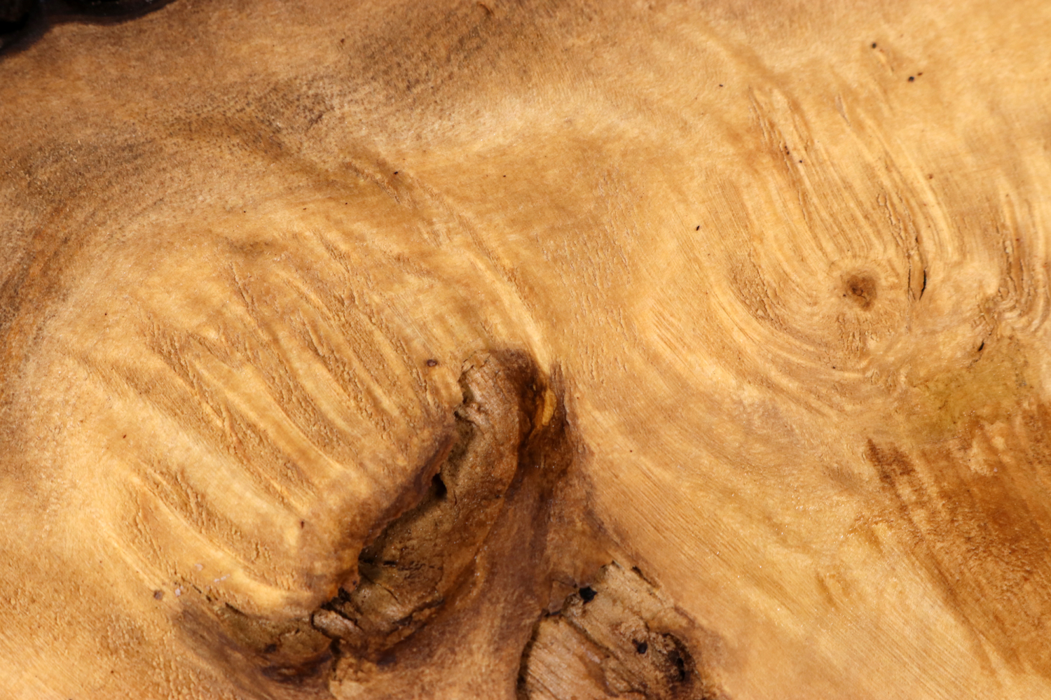 Das Holz ist mittelhart und eher leicht, lässt sich deshalb auch sehr gut bearbeiten. Leider sind beim Maserholz eigentlich immer Risse vorhanden, die verfüllt werden müssen.