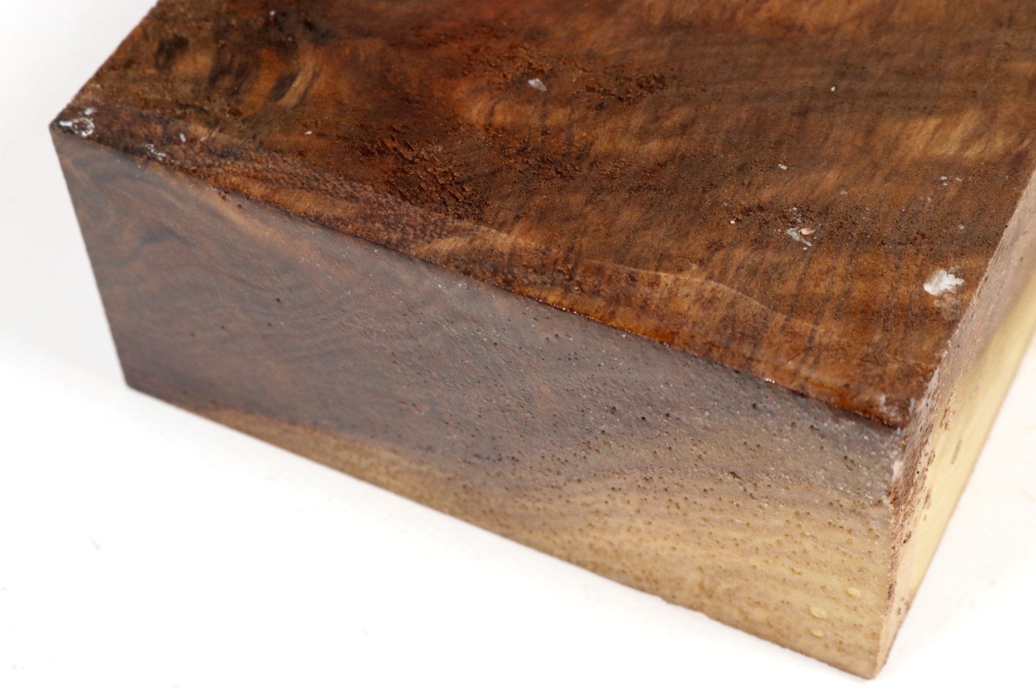 Das Holz ist mittelhart und eher leicht, lässt sich deshalb auch sehr gut bearbeiten. Leider sind beim Maserholz eigentlich immer Risse vorhanden, die verfüllt werden müssen.