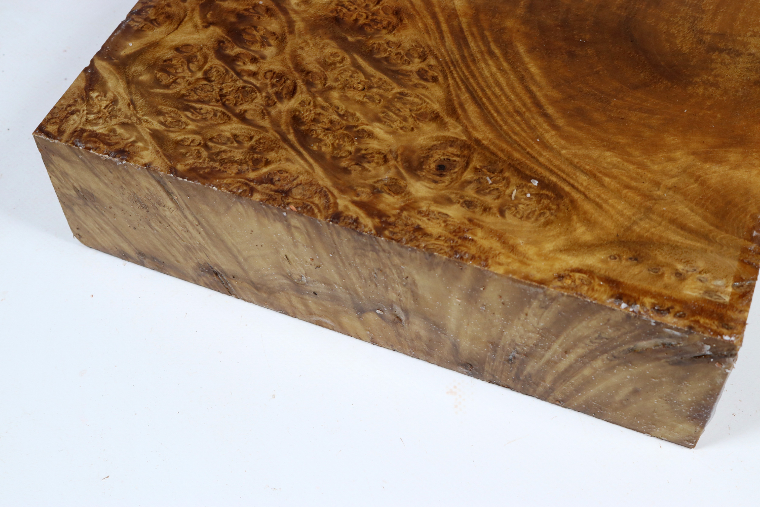 Das Holz ist mittelhart und eher leicht, lässt sich deshalb auch sehr gut bearbeiten. Leider sind beim Maserholz eigentlich immer Risse vorhanden, die verfüllt werden müssen.
