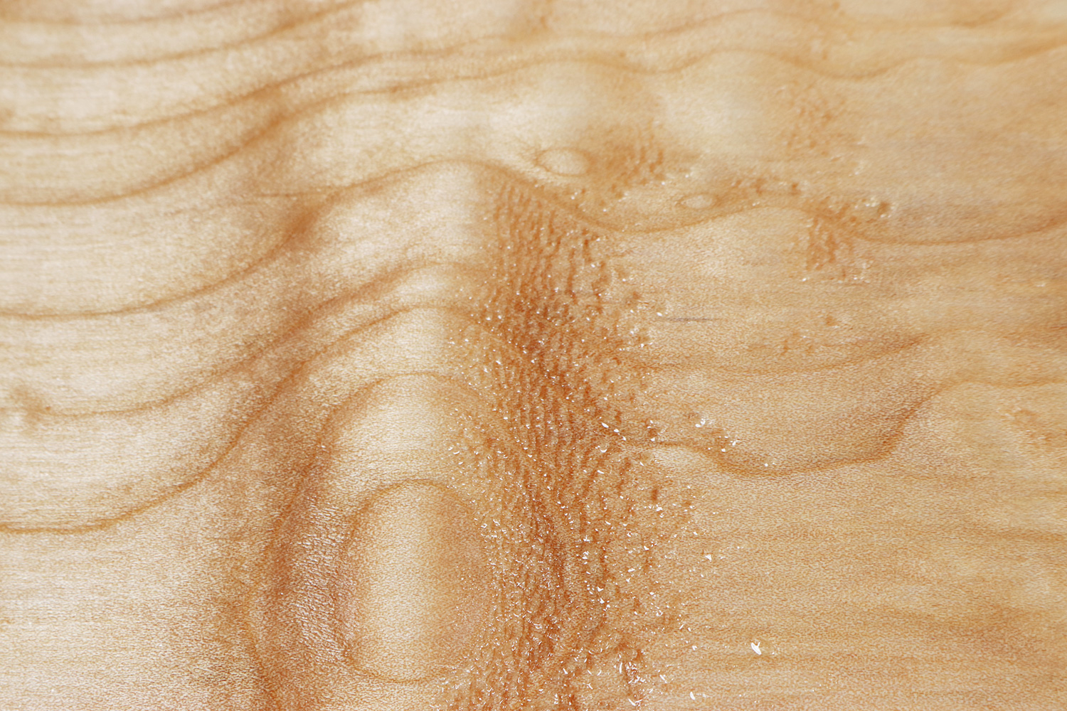 Für die bessere Sichtbarkeit der Farbe und Maserung wurde das Stück für die Produktfotos mit Alkohol besprüht.