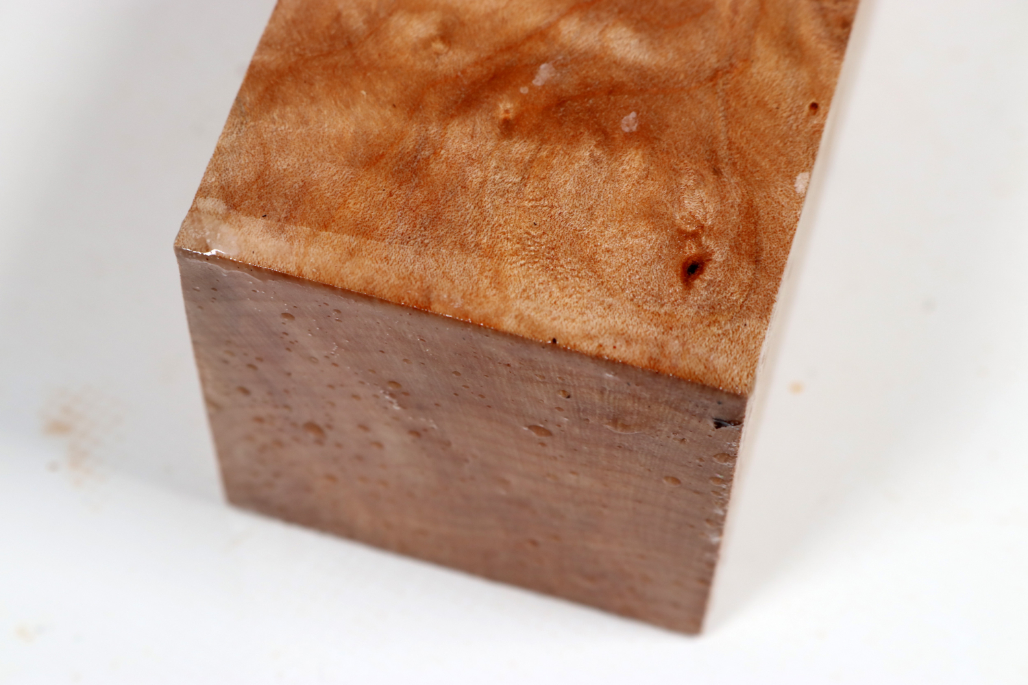 Für die bessere Sichtbarkeit der Farbe und Maserung wurde das Stück für die Produktfotos mit Alkohol besprüht.