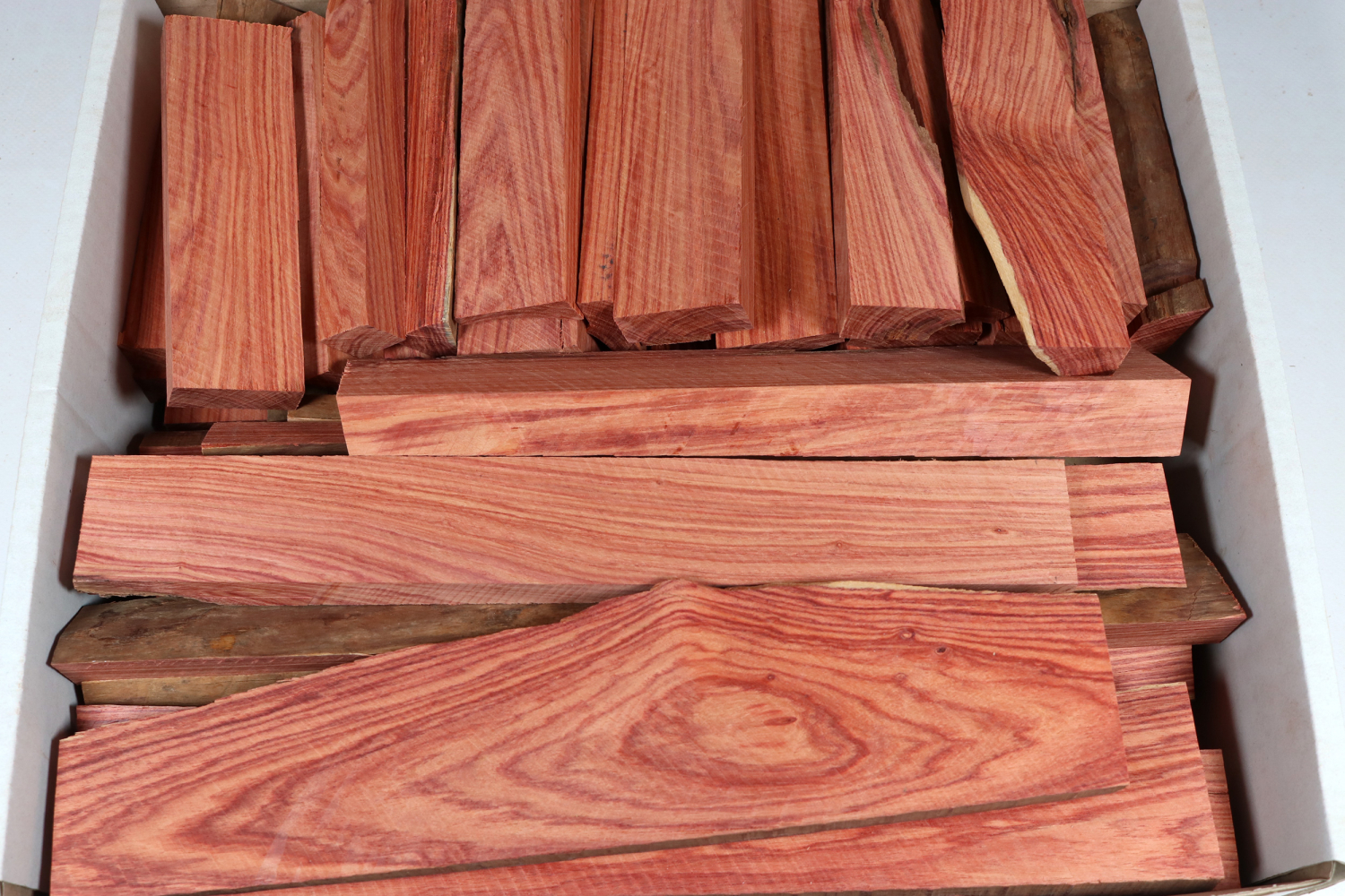 Eine stabile Klappbox aus Hartpappe (welche sich auch zum archivieren eignet), voll mit Edelholzabschnitten, Schnittresten und untermaßigen Stücken. Ideal für Schmuckhersteller und Designer oder Goldschmiede. Aber auch Modellbauer und Hobbybastler kleinerer Objekte werden hier fündig.