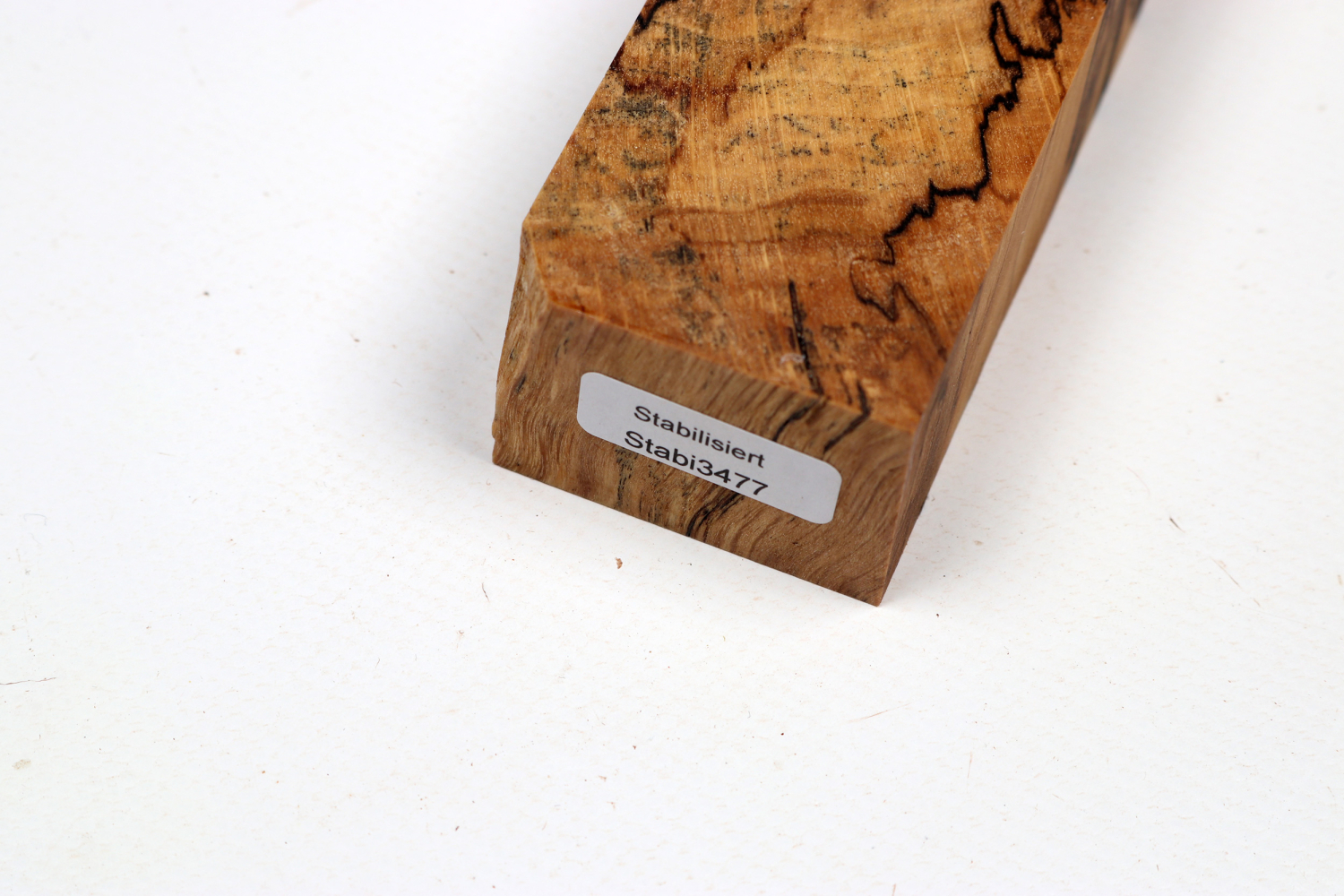 Der vorliegende Messerblock ist mit Acrylharz in einem aufwändigen Verfahren mit Vakuum stabilisiert und vollständig durchdrungen. Er nimmt kaum noch Wasser auf, das heisst, er ist formstabil und reißt nicht mehr. Stabilisiertes Holz lässt sich mit scharfen Werkzeugen sehr gut bearbeiten und verhält sich dabei wie ein hartholz. Durch die Stabilisierung wird eine sehr gute Härte, Standfestigkeit und Stabilität erreicht. Es eignet sich dadurch auch gut für starke Beanspruchung / feuchten Bereich, wie z.B. Outdoor. Jede Holzart nimmt unterschiedliche Menge an Harz auf, stockige Hölzer natürlich am meisten.