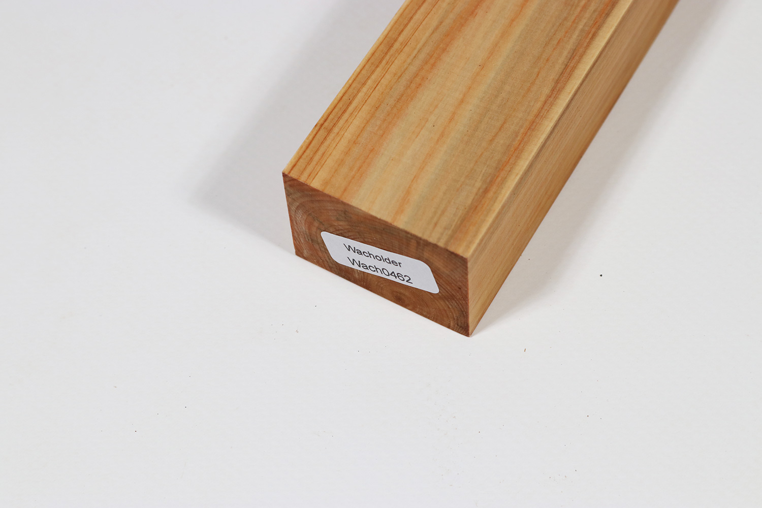 Das Holz ist mittelhart, dicht und lässt sich wunderbar bearbeiten. Die Farbe ist dem deutschen Wacholder gegenüber etwas kräftiger. Die hier vorliegenden Stücke kommen aus Frankreich.