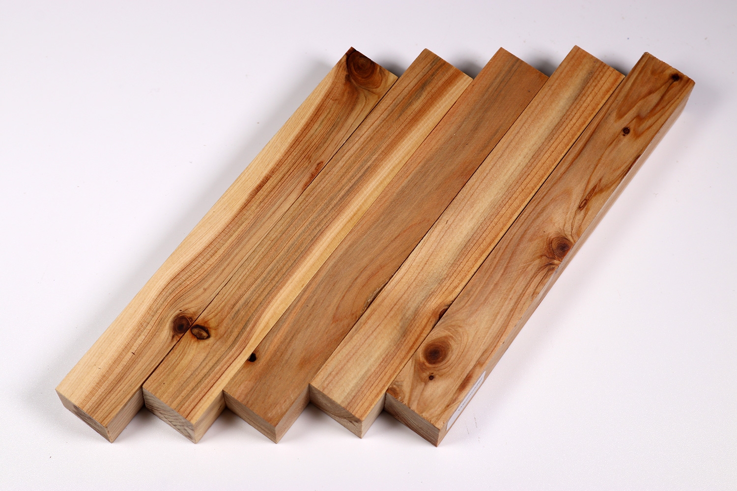Das Holz ist mittelhart, dicht und lässt sich wunderbar bearbeiten. Die Farbe ist dem deutschen Wacholder gegenüber etwas kräftiger. Die hier vorliegenden Stücke kommen aus Frankreich.