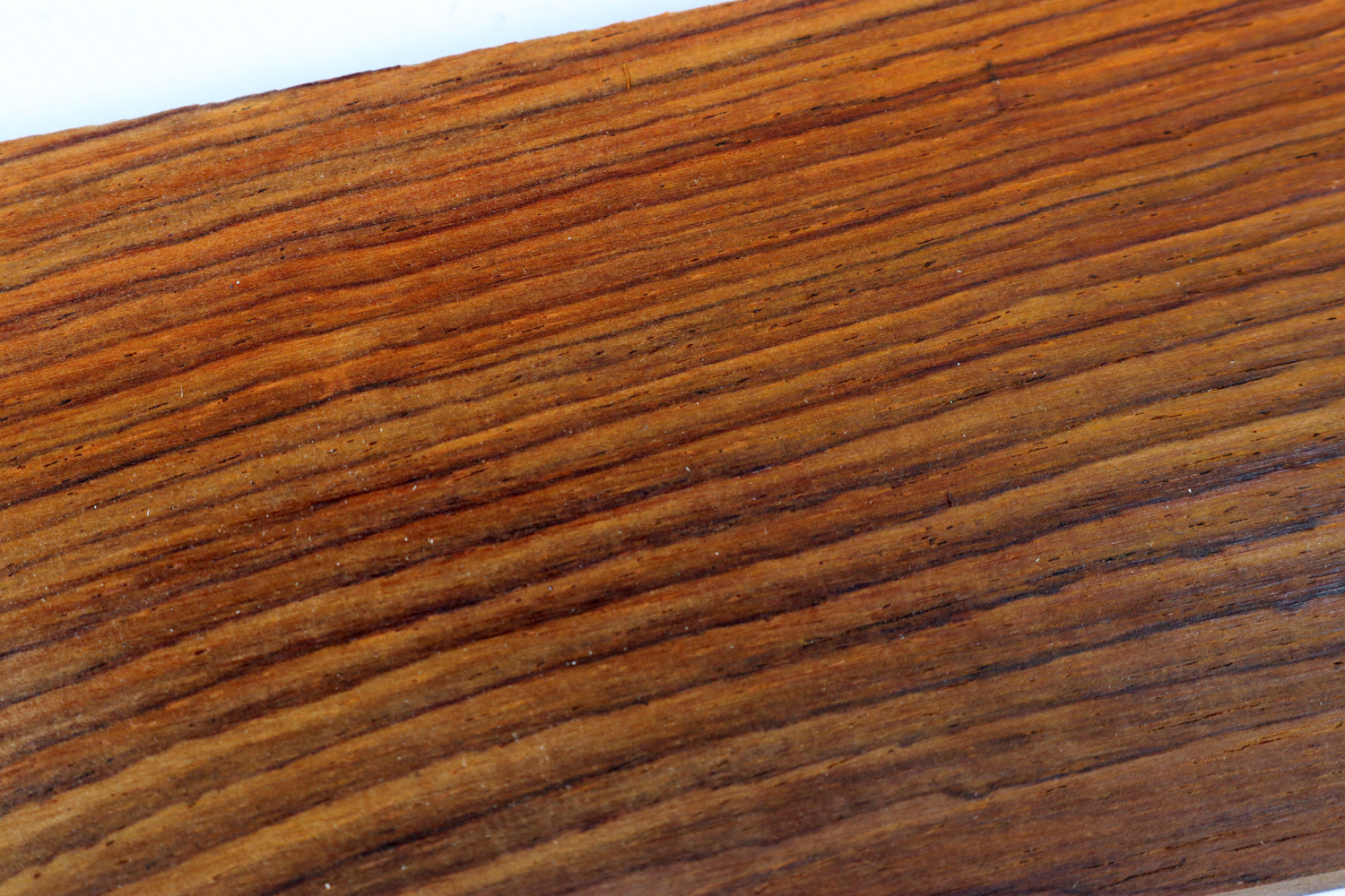 Cocobolo (Dalbergia retusa) comes from Central America and grows along the Pacific coast, but mainly in Nicaragua. It is a true rosewood and has the highest fat content of its kind. Often it just needs a polish without any other surface treatment. Only the heartwood is used; when freshly cut, it can range from a dark orange to a deep red. Although the pale yellow sapwood can be a very nice contrast. The wood darkens over time and under the influence of UV light.