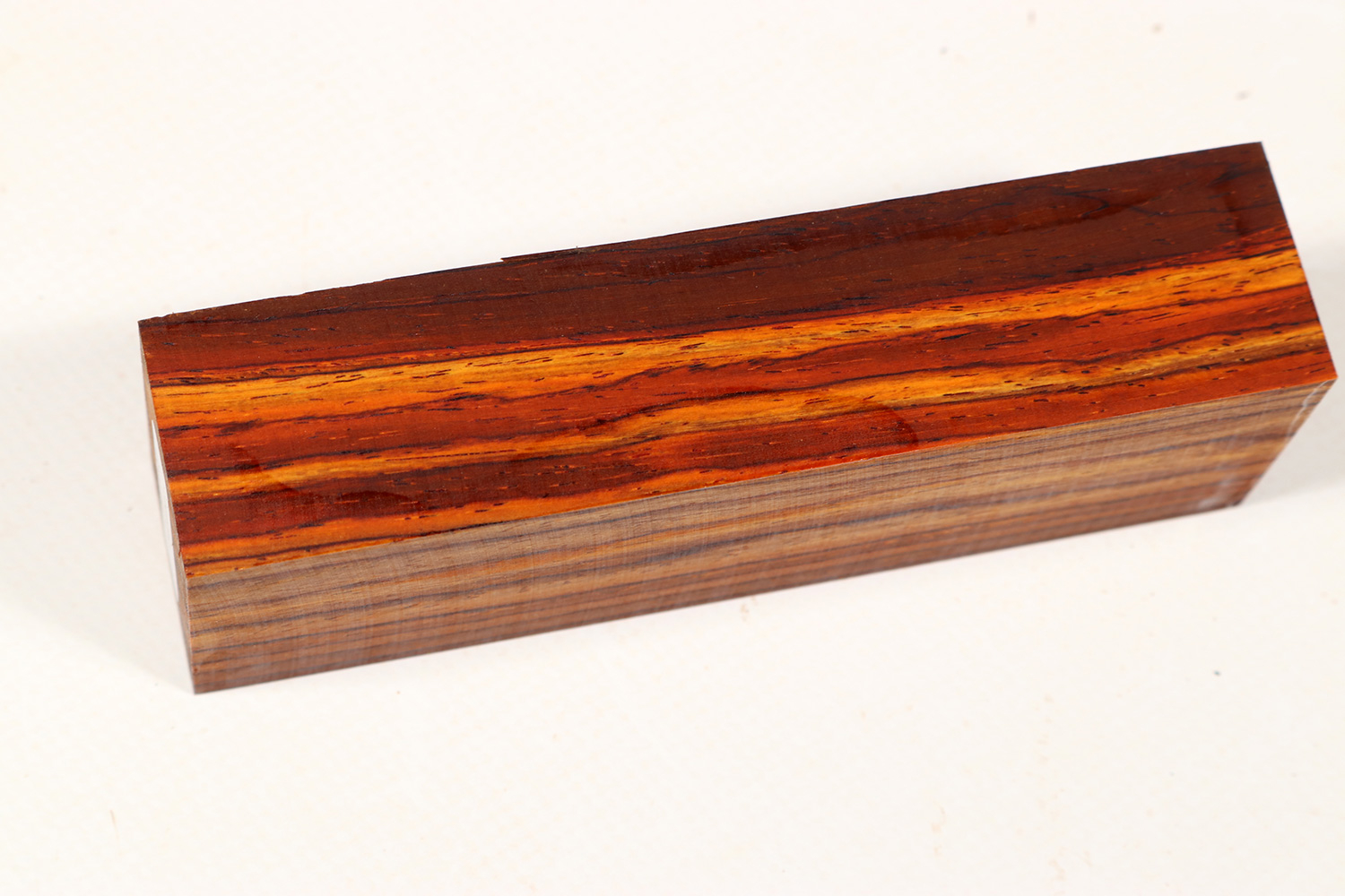Cocobolo (Dalbergia tucurensis) comes from Central America and grows along the Pacific coast, but mainly in Nicaragua. It is a true rosewood and has the highest fat content of its kind. Often it just needs a polish without any other surface treatment. Only the heartwood is used; when freshly cut, it can range from a dark orange to a deep red. Although the pale yellow sapwood can be a very nice contrast. The wood darkens over time and under the influence of UV light.