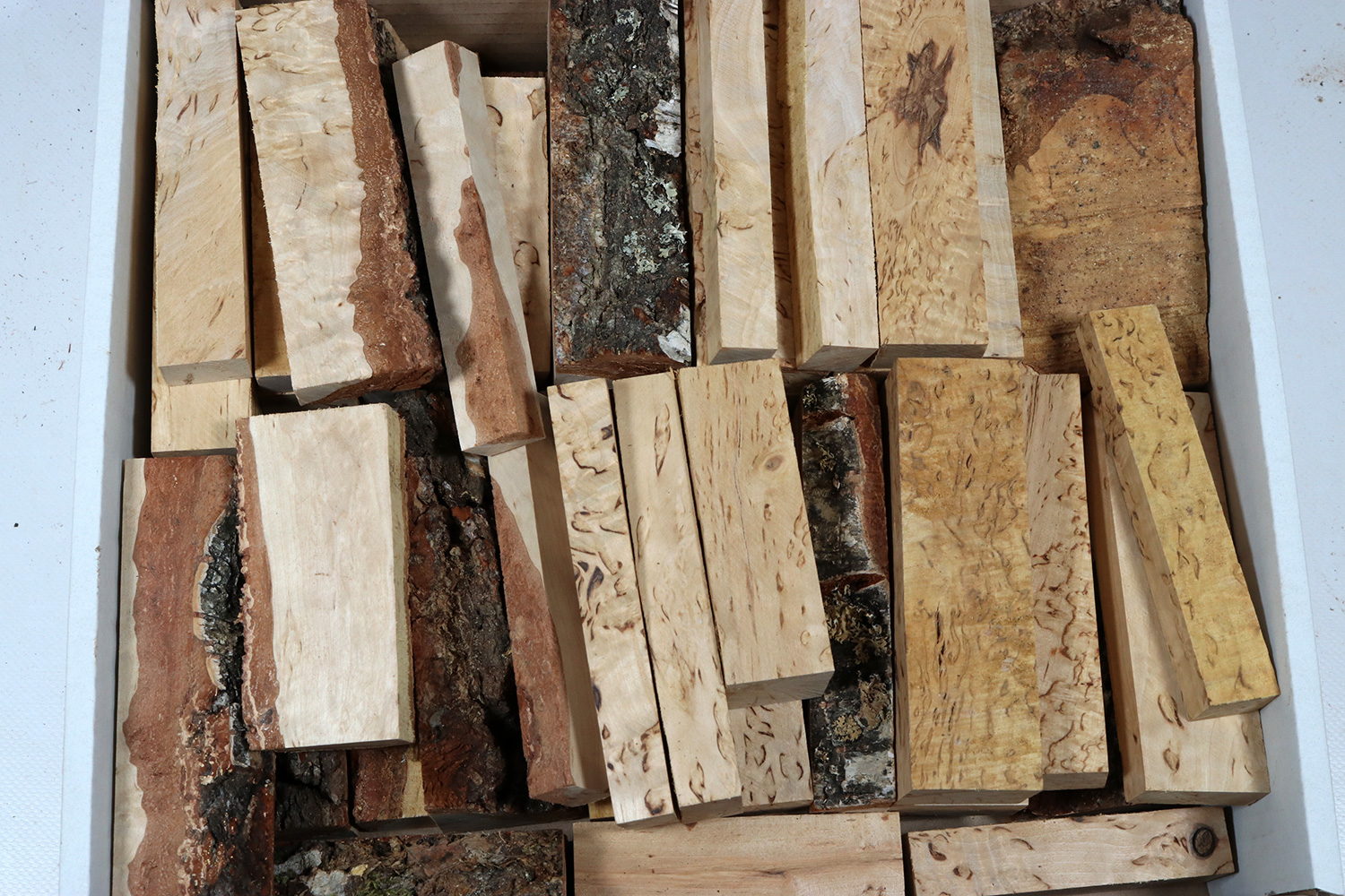 The Karelian masur birch (Betula pendula var. Carelica) occurs in Karelia, the border region between Russia and Eastern Finland. It is simply THE classic wood for Nordic knives of all kinds, such as the Sami knife. It cannot be used for much larger objects simply because of its rather small dimensions (the trunks are normally only 4-8 inches across). Trunks with good grains are relatively rare and are much sought after. The typical appearance in the form of brown veins is unique and is found in no other burl.