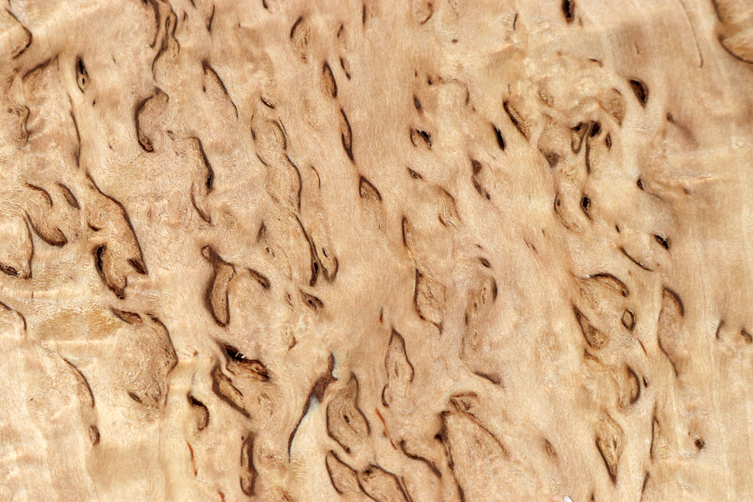 The Karelian masur birch (Betula pendula var. Carelica) occurs in Karelia, the border region between Russia and Eastern Finland. It is simply THE classic wood for Nordic knives of all kinds, such as the Sami knife. It cannot be used for much larger objects simply because of its rather small dimensions (the trunks are normally only 4-8 inches across). Trunks with good grains are relatively rare and are much sought after. The typical appearance in the form of brown veins is unique and is found in no other burl.