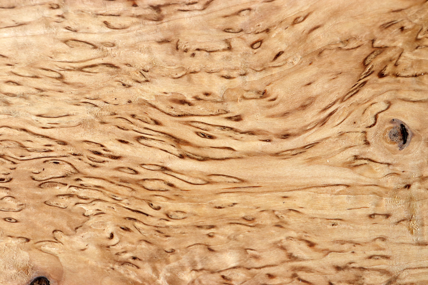 The Karelian masur birch (Betula pendula var. Carelica) occurs in Karelia, the border region between Russia and Eastern Finland. It is simply THE classic wood for Nordic knives of all kinds, such as the Sami knife. It cannot be used for much larger objects simply because of its rather small dimensions (the trunks are normally only 4-8 inches across). Trunks with good grains are relatively rare and are much sought after. The typical appearance in the form of brown veins is unique and is found in no other burl.