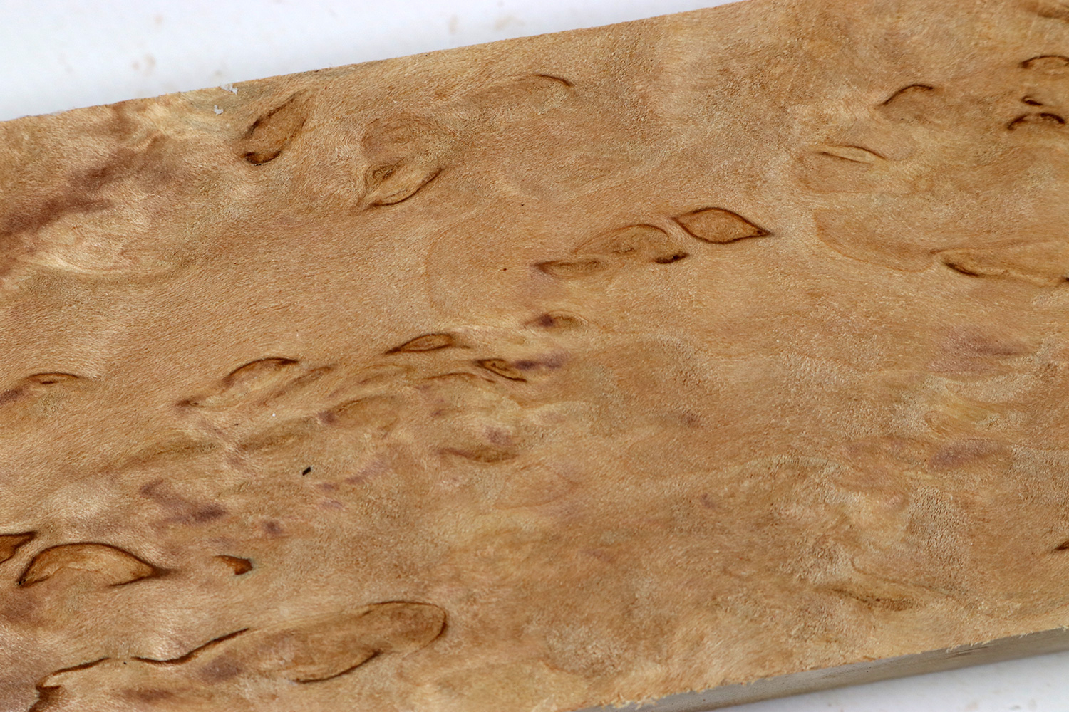 The Karelian masur birch (Betula pendula var. Carelica) occurs in Karelia, the border region between Russia and Eastern Finland. It is simply THE classic wood for Nordic knives of all kinds, such as the Sami knife. It cannot be used for much larger objects simply because of its rather small dimensions (the trunks are normally only 4-8 inches across). Trunks with good grains are relatively rare and are much sought after. The typical appearance in the form of brown veins is unique and is found in no other burl.