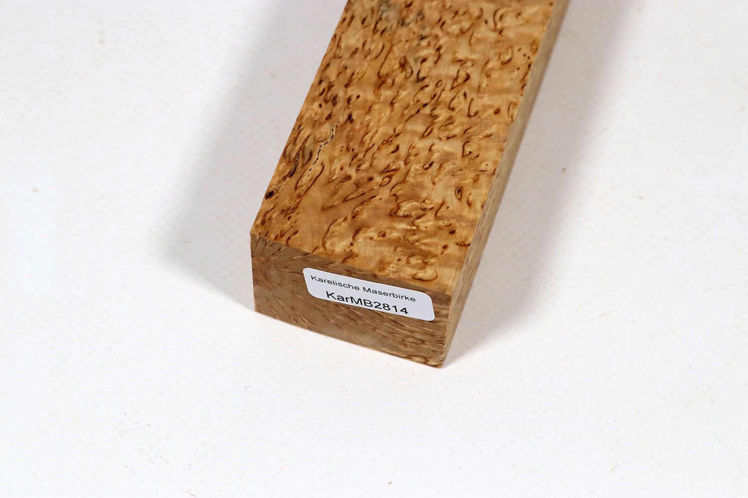 Karelian Masur Birch (Betula pendula var. carelica) ©Paul LenzThe Karelian masur birch (Betula pendula var. Carelica) occurs in Karelia, the border region between Russia and Eastern Finland. It is simply THE classic wood for Nordic knives of all kinds, such as the Sami knife. It cannot be used for much larger objects simply because of its rather small dimensions (the trunks are normally only 4-8 inches across). Trunks with good grains are relatively rare and are much sought after. The typical appearance in the form of brown veins is unique and is found in no other burl.
