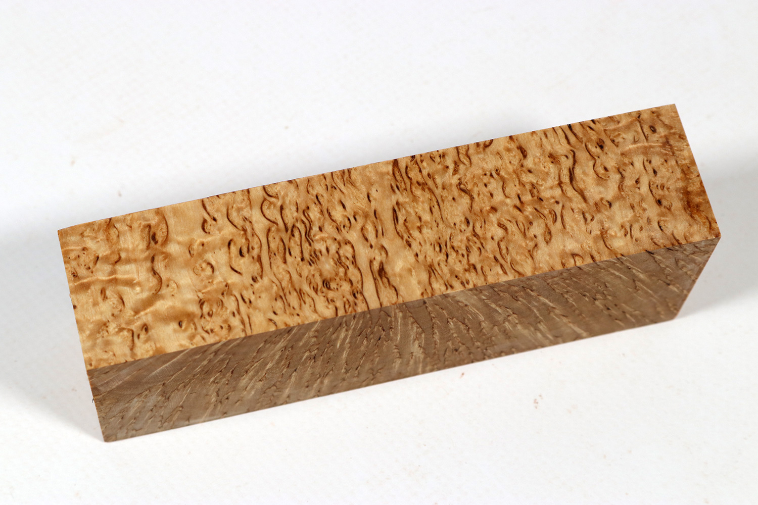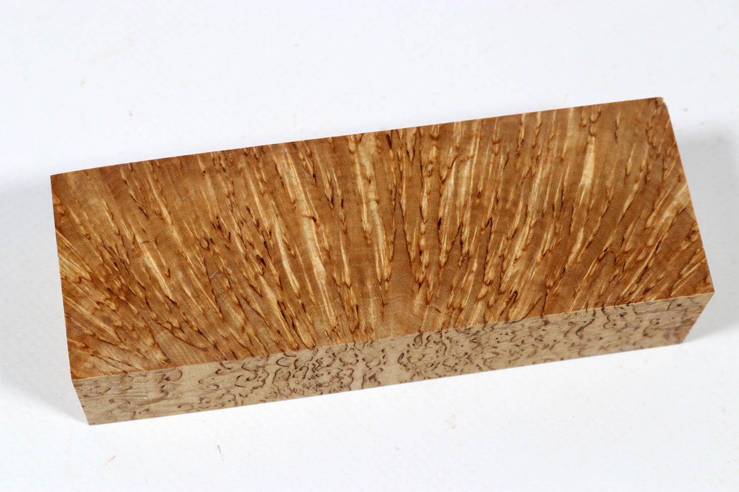 The Karelian masur birch (Betula pendula var. Carelica) occurs in Karelia, the border region between Russia and Eastern Finland. It is simply THE classic wood for Nordic knives of all kinds, such as the Sami knife. It cannot be used for much larger objects simply because of its rather small dimensions (the trunks are normally only 4-8 inches across). Trunks with good grains are relatively rare and are much sought after. The typical appearance in the form of brown veins is unique and is found in no other burl.