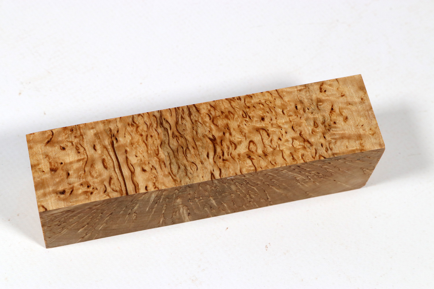 The Karelian masur birch (Betula pendula var. Carelica) occurs in Karelia, the border region between Russia and Eastern Finland. It is simply THE classic wood for Nordic knives of all kinds, such as the Sami knife. It cannot be used for much larger objects simply because of its rather small dimensions (the trunks are normally only 4-8 inches across). Trunks with good grains are relatively rare and are much sought after. The typical appearance in the form of brown veins is unique and is found in no other burl.