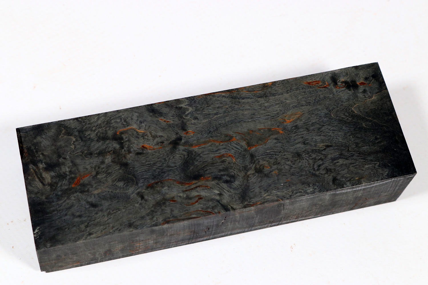 The Karelian masur birch (Betula pendula var. Carelica) occurs in Karelia, the border region between Russia and Eastern Finland. It is simply THE classic wood for Nordic knives of all kinds, such as the Sami knife. It cannot be used for much larger objects simply because of its rather small dimensions (the trunks are normally only 4-8 inches across). Trunks with good grains are relatively rare and are much sought after. The typical appearance in the form of brown veins is unique and is found in no other burl.