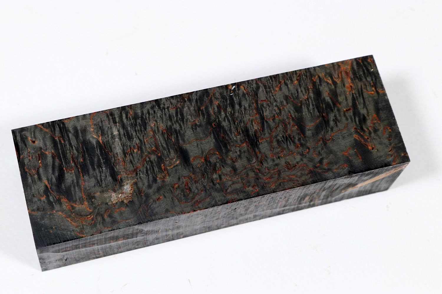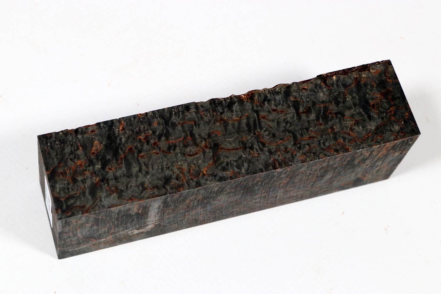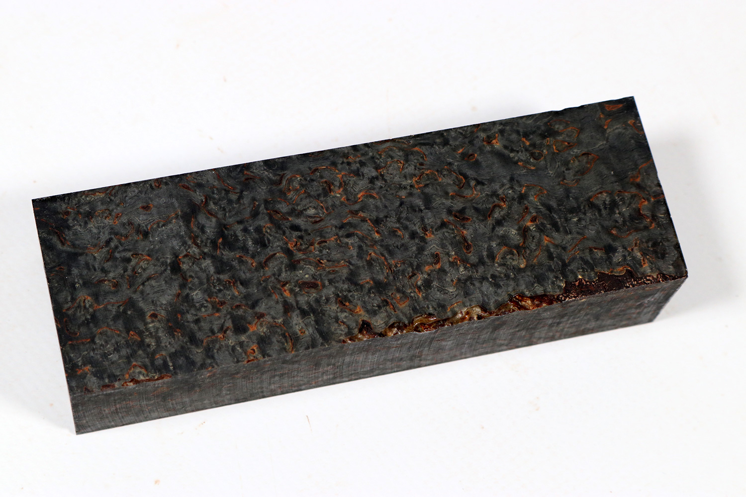 The Karelian masur birch (Betula pendula var. Carelica) occurs in Karelia, the border region between Russia and Eastern Finland. It is simply THE classic wood for Nordic knives of all kinds, such as the Sami knife. It cannot be used for much larger objects simply because of its rather small dimensions (the trunks are normally only 4-8 inches across). Trunks with good grains are relatively rare and are much sought after. The typical appearance in the form of brown veins is unique and is found in no other burl.