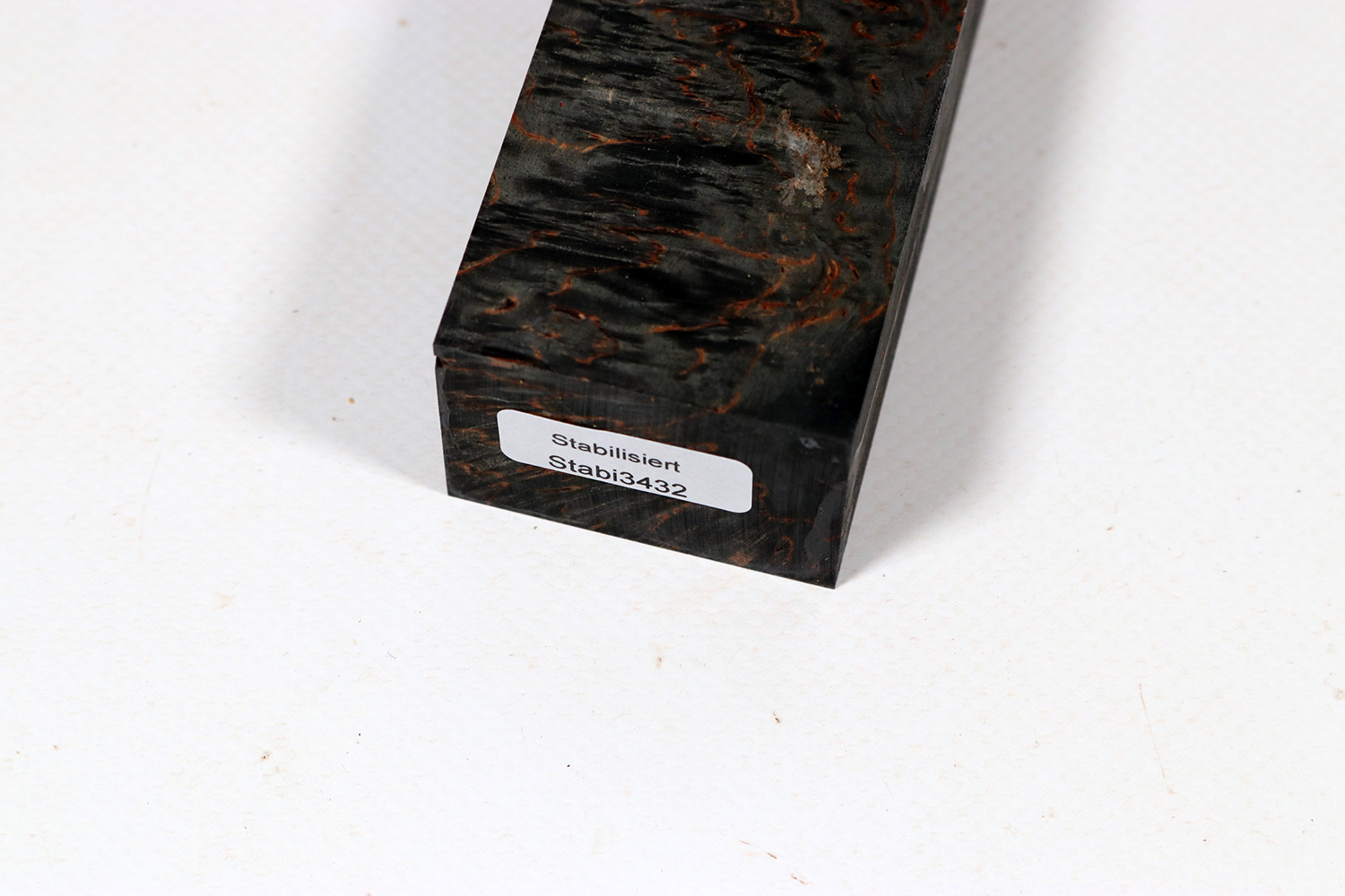 This knife block is stabilized with acrylic resin in a complex vacuum process and completely penetrated. It hardly absorbs any water, which means it is dimensionally stable and no longer cracks. Stabilized wood can be worked very well with sharp tools and behaves like hardwood. Stabilization results in very good hardness, stability and sturdiness. It is therefore also suitable for heavy use / damp areas, e.g. outdoors. Each type of wood absorbs a different amount of resin, of course, the most resinous woods.