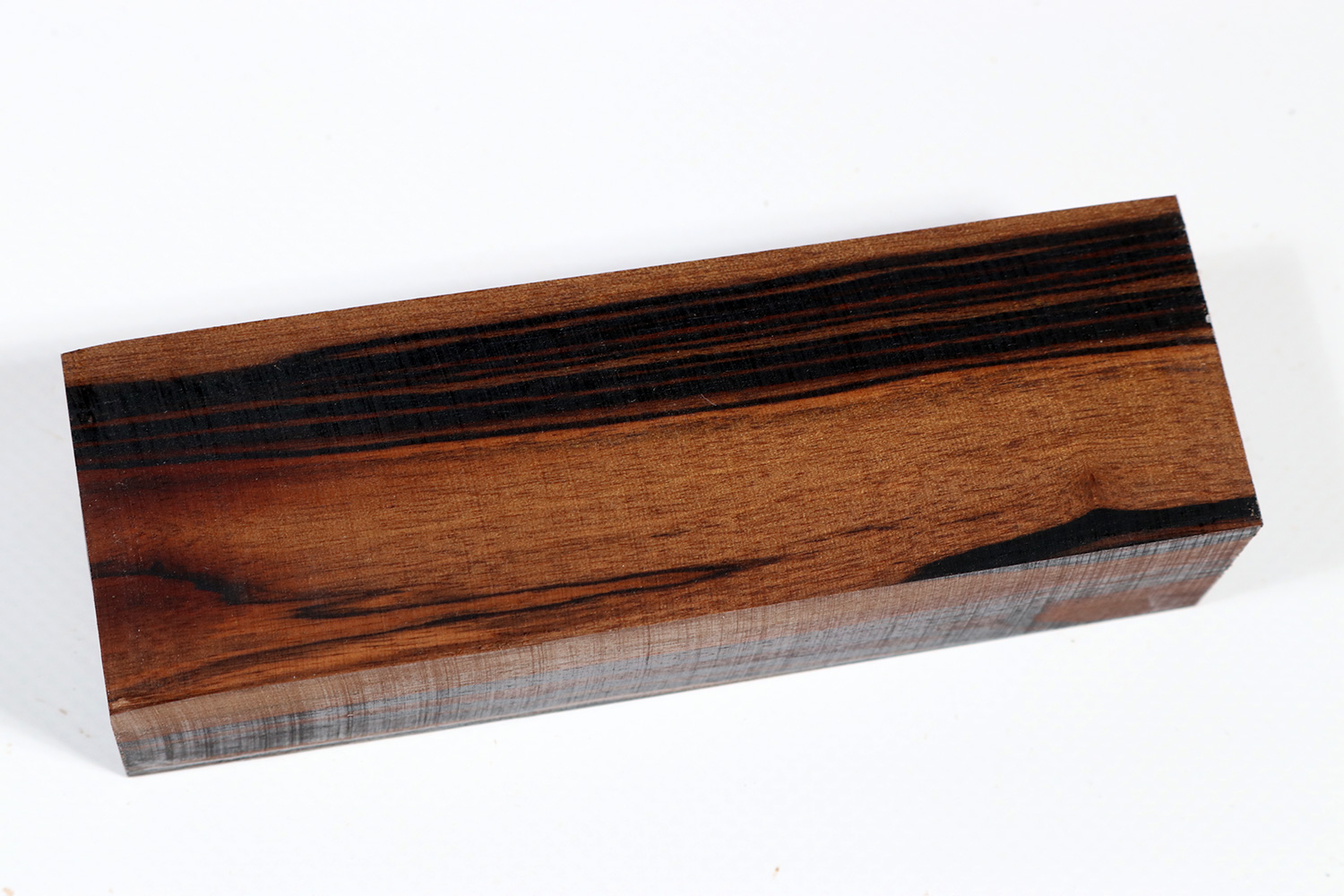 Makassar Ebony (Diospyros celebica) is a very rare ebony, with a very striking striped effect. It is found on the Indonesian island of Sulawesi and has been used for centuries as a very popular exotic wood for exclusive furniture, fine turning work, and is widely used in traditional Japanese homes. Japan is its main importer. Its name comes from its main export port of Makassar.