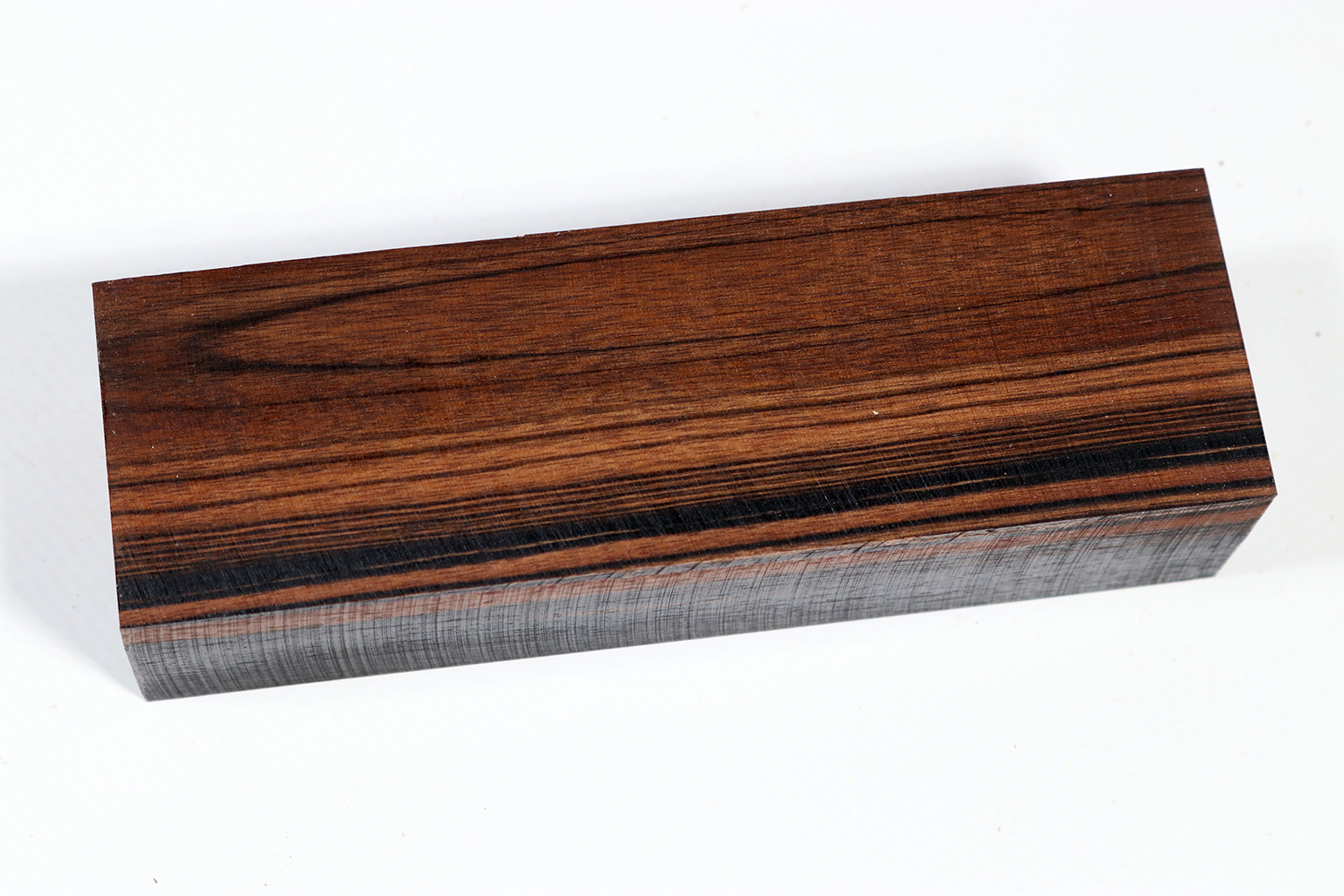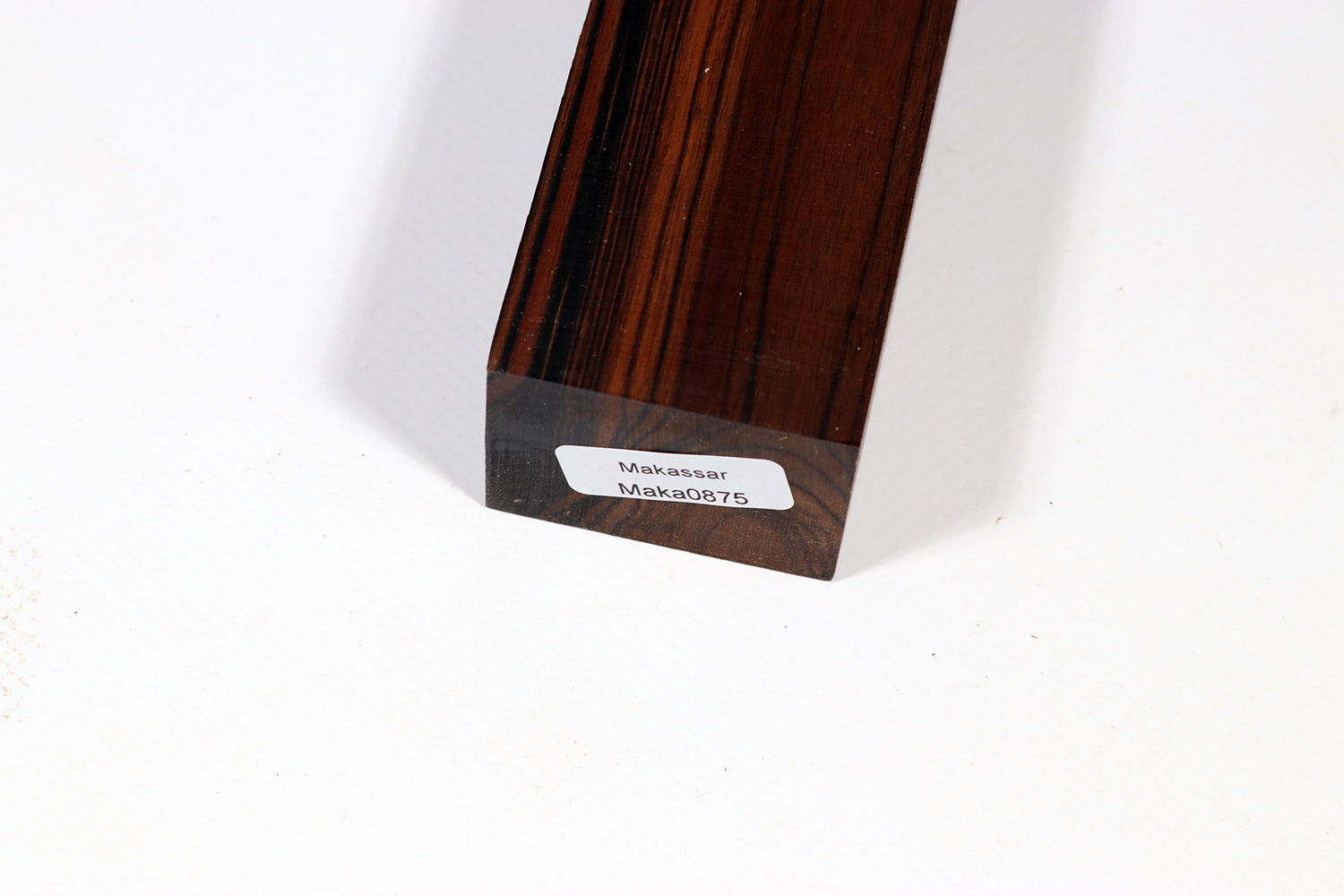 Makassar Ebony (Diospyros celebica) is a very rare ebony, with a very striking striped effect. It is found on the Indonesian island of Sulawesi and has been used for centuries as a very popular exotic wood for exclusive furniture, fine turning work, and is widely used in traditional Japanese homes. Japan is its main importer. Its name comes from its main export port of Makassar.