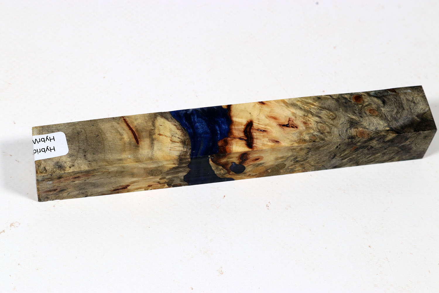 Hybrid wood consists partially of wood, and partially of different coloured acrylic resins. They are merged (cast) in a special process. The resulting hybrid material can be processed easily and is dimensionally stable. You may need to sharpen your tools quite often. In order to achieve great visual effects, partly ground mother of pearl shell is used, which can blunt sharp cutting tools faster than usual.