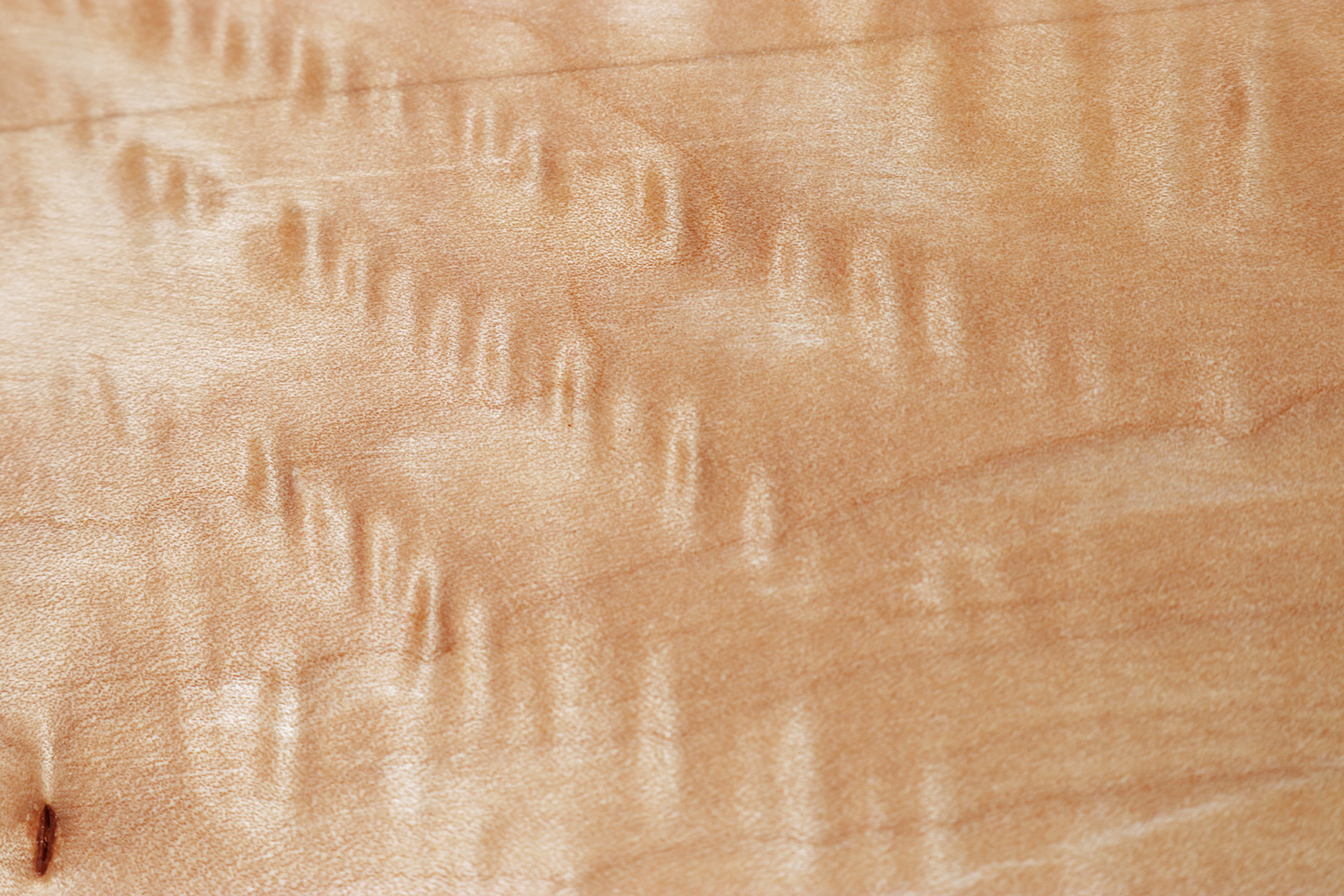The quilted maple is not a separate species, but a derivative of the sugar maple (Acer saccharum). The gorgeous 3-D, quilted effect occurs only sporadically at the base of the sugar maple trunk. In connection with the brown lines of the early and late growth, this results in a very spectacular effect. This natural phenomenon is very rare and therefore very desirable and relatively expensive. The sugar maple grows in North America and can reach heights of 135 feet. The tree is the main source of maple syrup, of course.