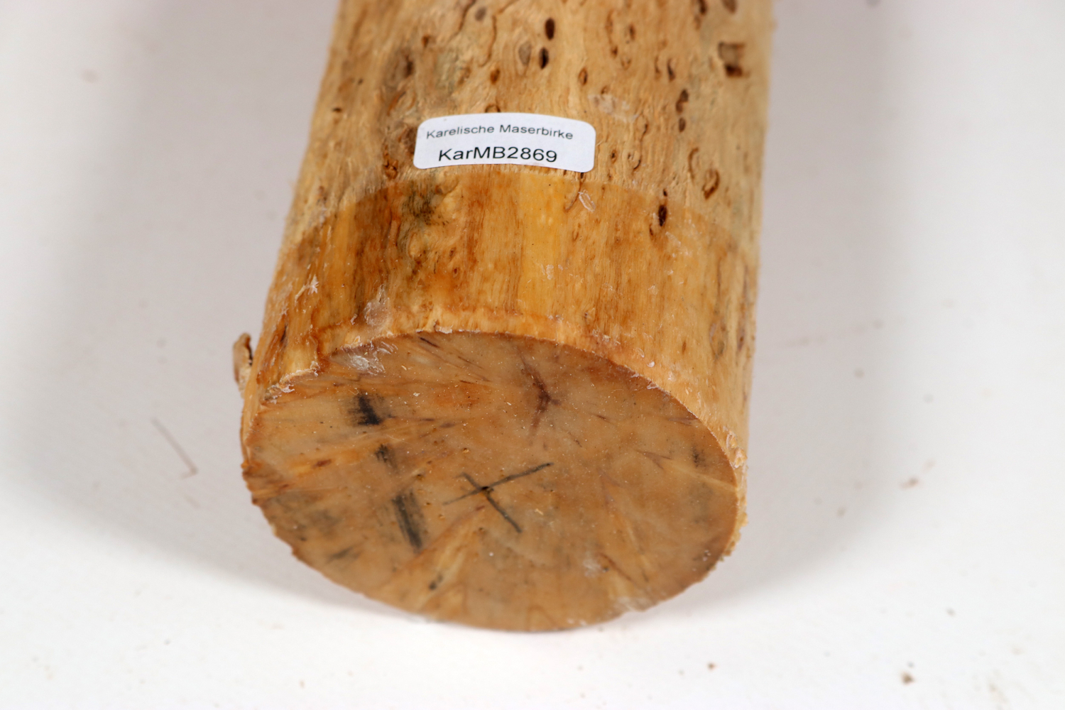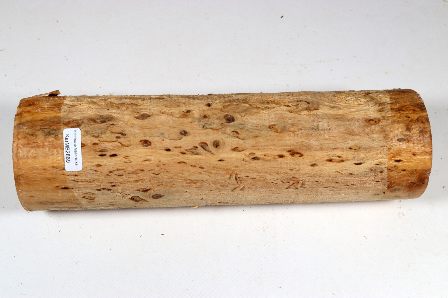 Die Karelische Maserbirke (Betula pendula var. carelica) kommt in der Grenzregion zwischen Rußland und Ostfinnland, dem sogenannten Karelien vor. Es ist einfach DAS klassische Holz für nordische Messer aller Art, wie z.B. Sami-Messer. Eine Verwendbarkeit für größere Objekte schließt sich auf Grund der eher geringen Dimensionen von selbst aus (die Stämme haben üblicherweise einen Durchmesser von lediglich 10-20 cm). Gut gemaserte Stämme sind verhältnissmäßig selten und begehrt. Das typische Aussehen in Form der braunen Adern ist einzigartig und kommt bei keinem anderen Maserholz vor.