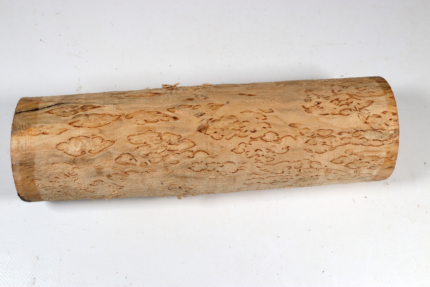 Die Karelische Maserbirke (Betula pendula var. carelica) kommt in der Grenzregion zwischen Rußland und Ostfinnland, dem sogenannten Karelien vor. Es ist einfach DAS klassische Holz für nordische Messer aller Art, wie z.B. Sami-Messer. Eine Verwendbarkeit für größere Objekte schließt sich auf Grund der eher geringen Dimensionen von selbst aus (die Stämme haben üblicherweise einen Durchmesser von lediglich 10-20 cm). Gut gemaserte Stämme sind verhältnissmäßig selten und begehrt. Das typische Aussehen in Form der braunen Adern ist einzigartig und kommt bei keinem anderen Maserholz vor.