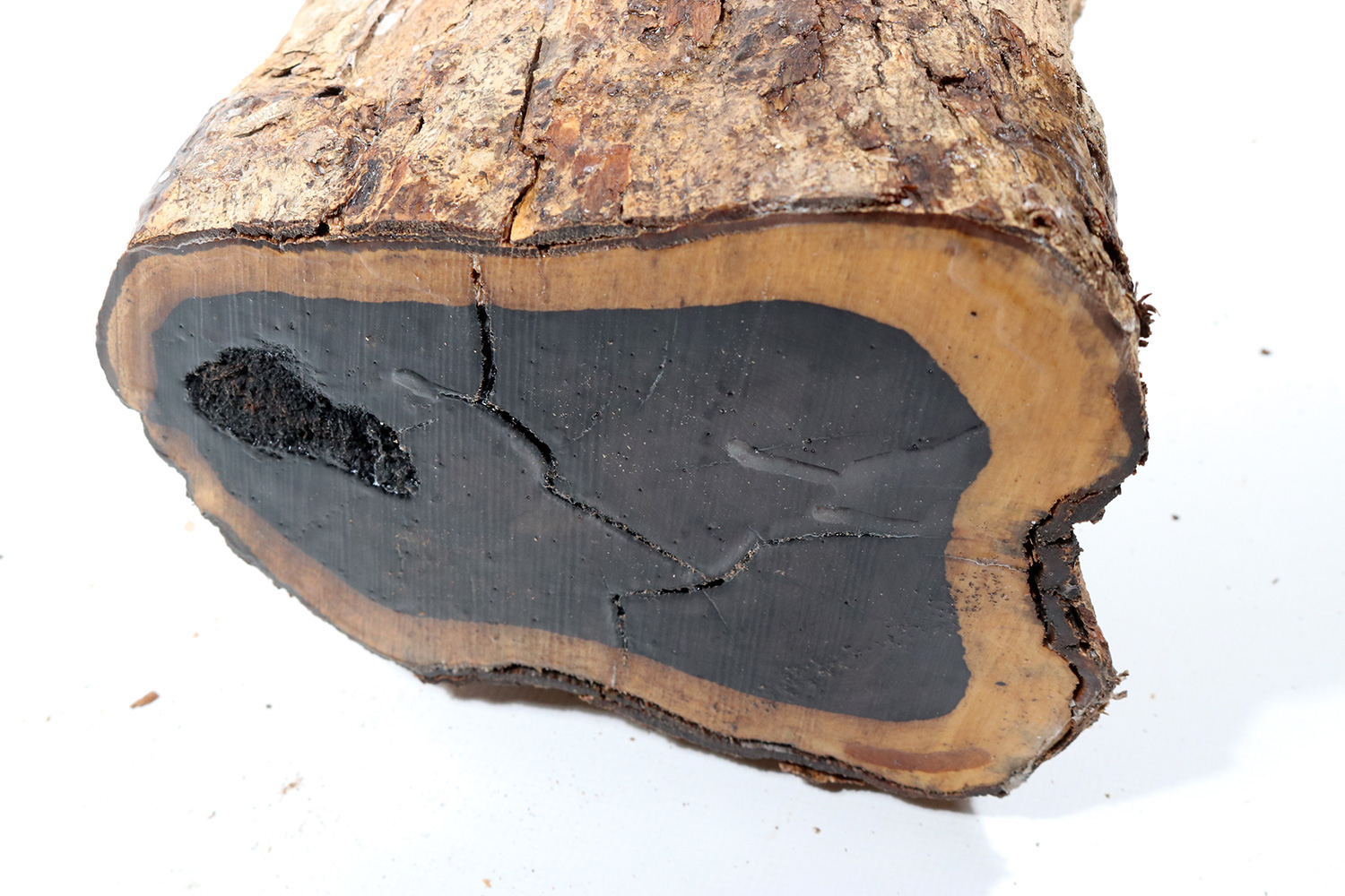 The wood ist very hard and heavy. Its blackish-violet color and grain is special and very subtle, but can usually be seen upon closer inspection once finished.