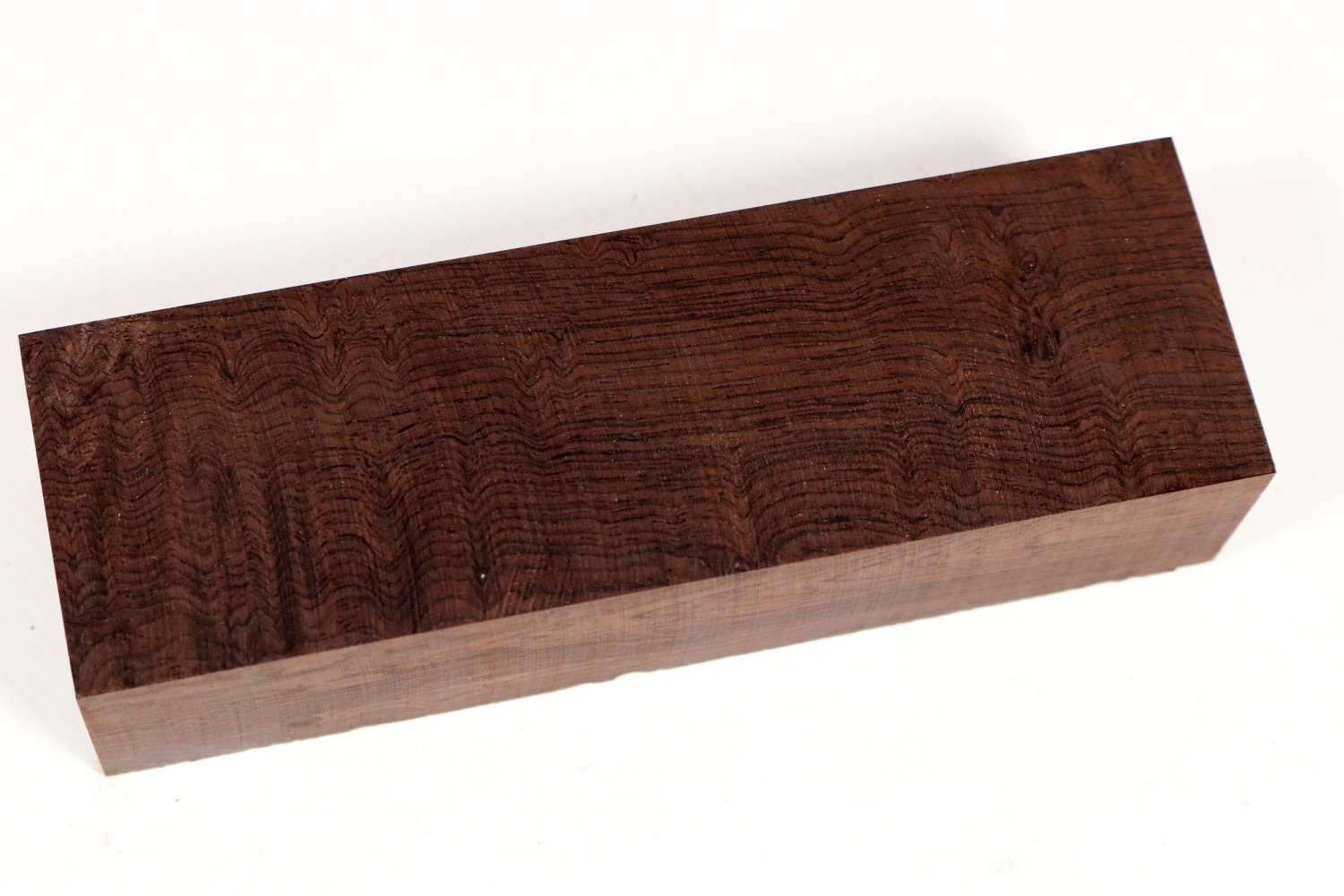 The wood ist very hard and heavy. Its blackish-violet color and grain is special and very subtle, but can usually be seen upon closer inspection once finished.