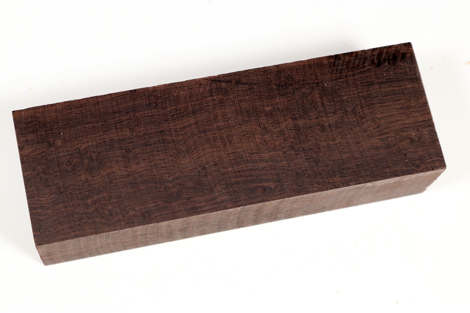 The wood ist very hard and heavy. Its blackish-violet color and grain is special and very subtle, but can usually be seen upon closer inspection once finished.