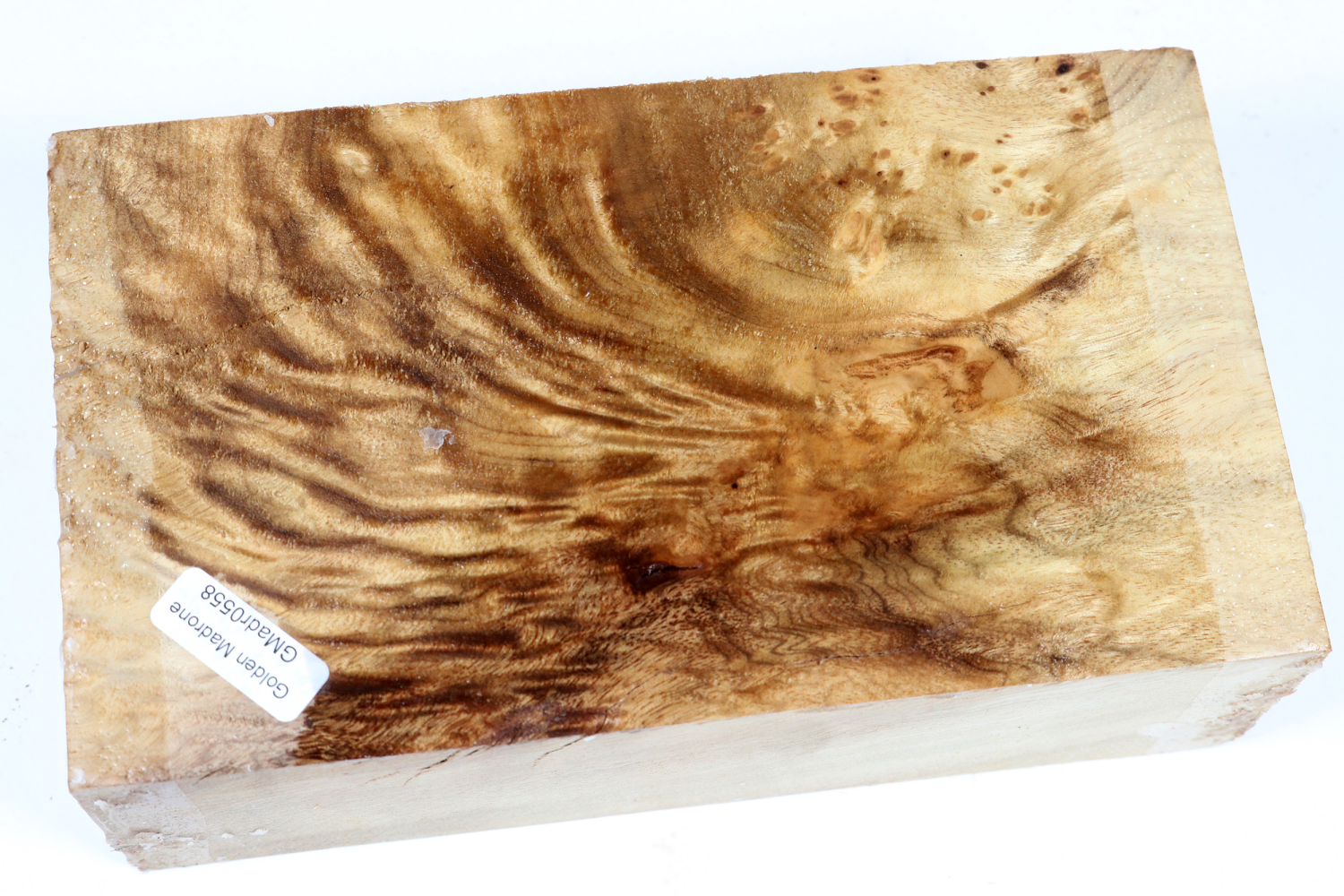 Golden Madrone (Nothaphoebe spp.) comes from southeastern Asia and is a subspecies of the laurel family. It is most commonly found in Indonesia, Malaysia, Vietnam, Cambodia, and Laos. It has a subtle menthol smell that is noticeable when working with it. The three-dimensional appearance of the polished burl is both massive and distinctive with a depth unlike any other wood. The grain growth is relatively large.