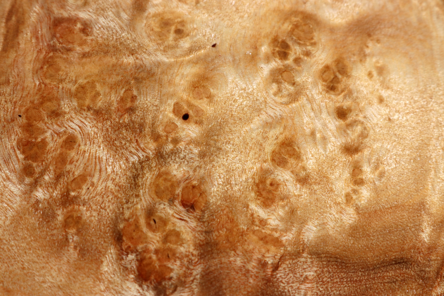 Golden Madrone (Nothaphoebe spp.) comes from southeastern Asia and is a subspecies of the laurel family. It is most commonly found in Indonesia, Malaysia, Vietnam, Cambodia, and Laos. It has a subtle menthol smell that is noticeable when working with it. The three-dimensional appearance of the polished burl is both massive and distinctive with a depth unlike any other wood. The grain growth is relatively large.