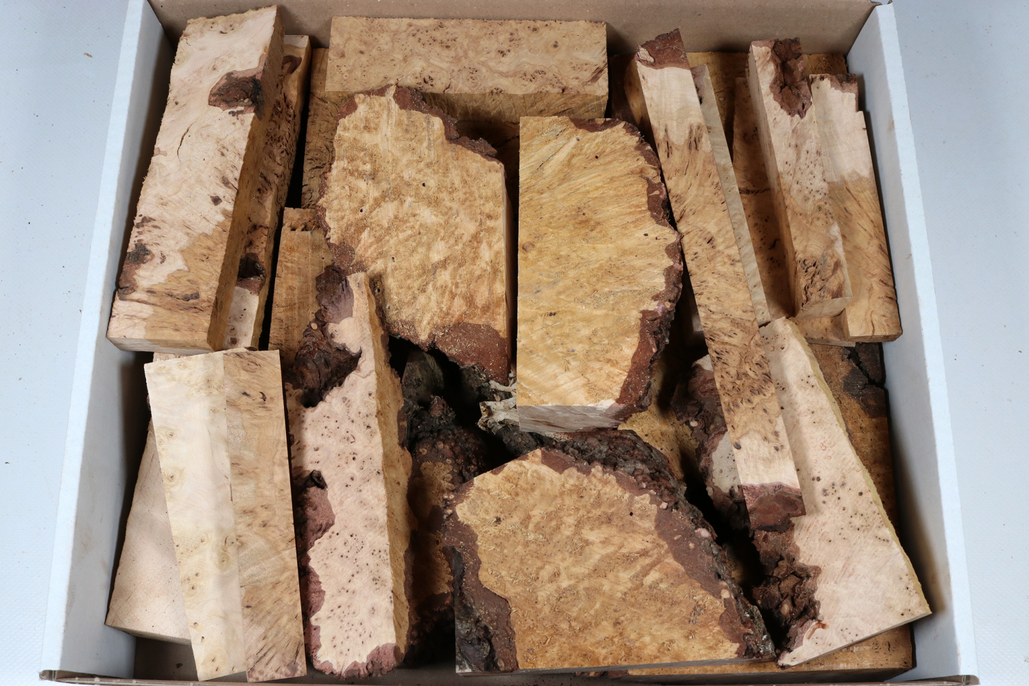 A stable folding box (which is also suitable for archives), full of fine wood sections, off-cuts, and undersized pieces. Ideal for jewelry makers, designers, or goldsmiths. But model builders and makers of smaller objects will find something in here to work with.