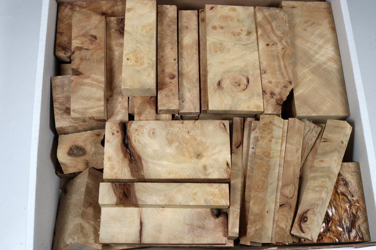 A stable folding box (which is also suitable for archives), full of fine wood sections, off-cuts, and undersized pieces. Ideal for jewelry makers, designers, or goldsmiths. But model builders and makers of smaller objects will find something in here to work with.