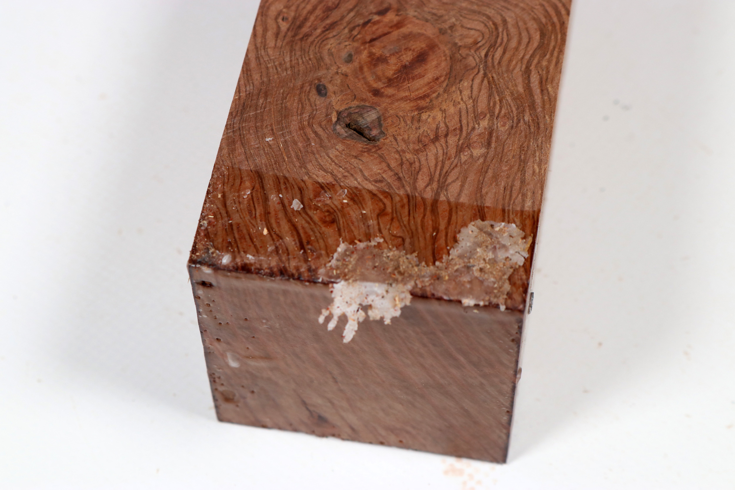 Finely grained wood may contain imperfections such as open knots, bark inclusions, or cracks that are typical of the species. These flaws come from the way the tree has grown and are completely natural. They can usually be filled with low-viscosity cyanoacrylate (super glue) and wood dust.