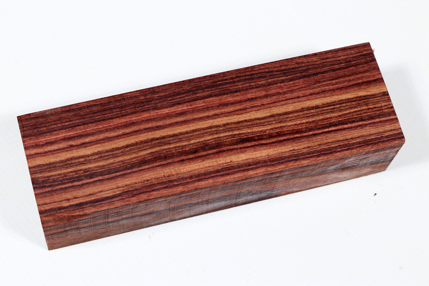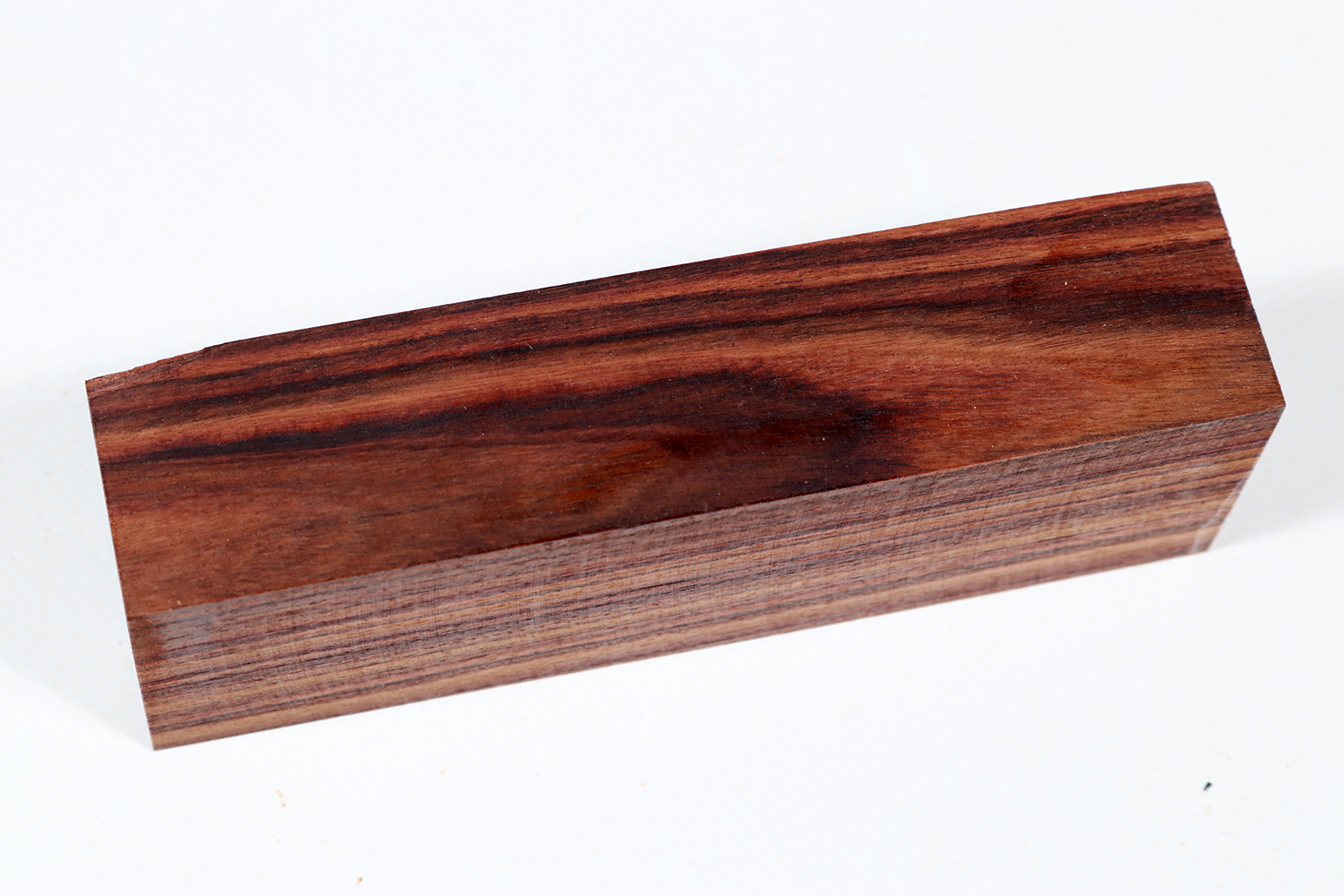 Kingwood (Dalbergia cearensis) is a particularly beautiful species of rosewood (Dalbergia). It comes from Brazil, mainly from the regions of Bahia, Ceará, Paraíba, and Pernambuco. It has a dark purplish color with light brown streaks. It is hard, dense, and is great for working and features a lovely scent. It does not like high temperature during processing (such as those produced by grinding) and it will respond with immediate darkening. It is a classic furniture wood, but is also used in musical instruments or other turning work.